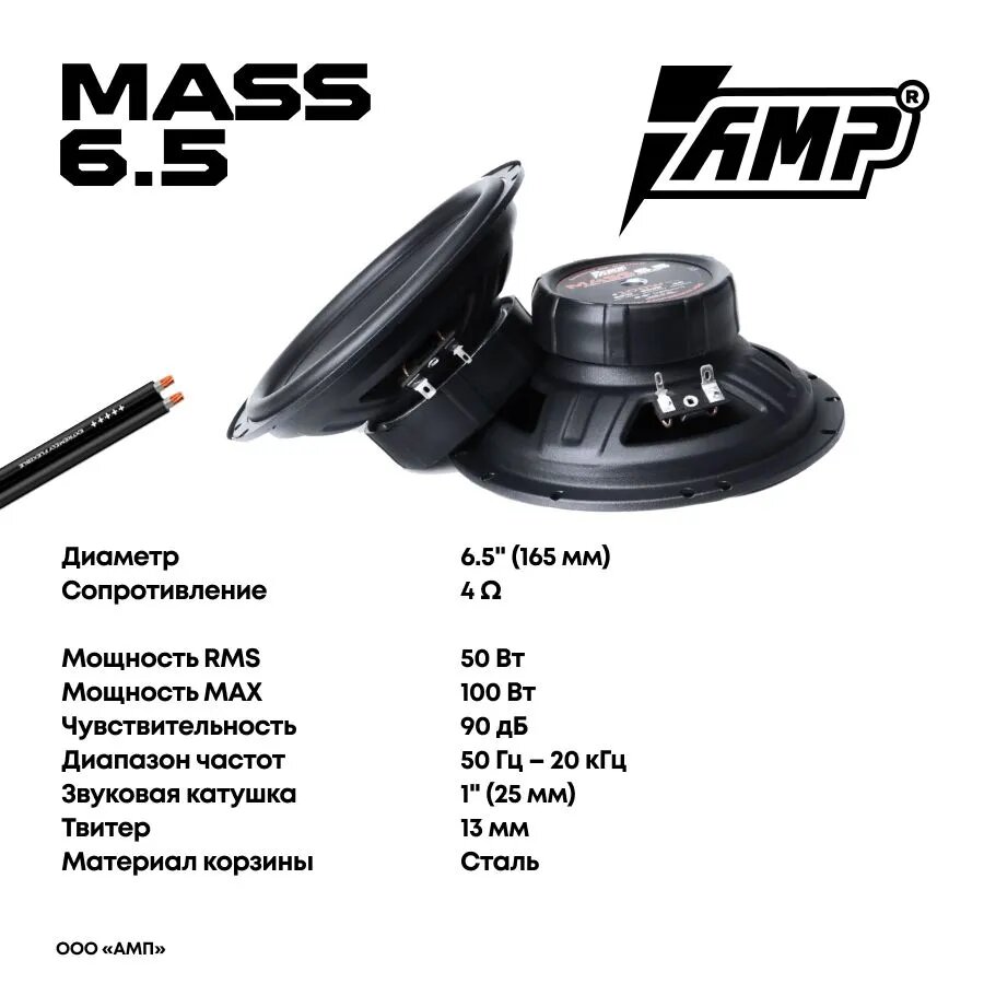 Акустика AMP MASS, 16см, 4 динамика, пассивная, 50Вт, 89дБ, черная информация: