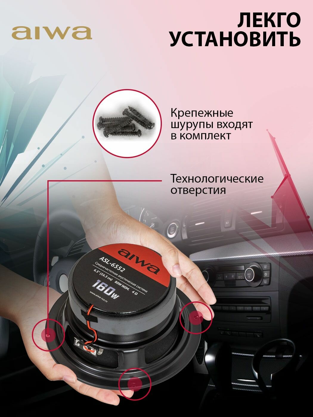 Акустическая система для автомобиля (2 динамика) AIWA ASL-6552, подсветка, 6.5 дюйма (16.5 см), 95Гц - 9кГц, 160 Вт информация: