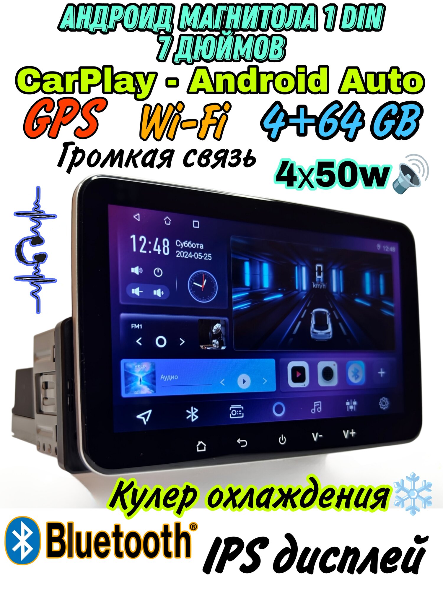 Отзывы на Андроид Магнитола 1DIN 7 дюймов 4+64GB, GPS, Wi-Fi, Bluetooth, CarPlay, RDS