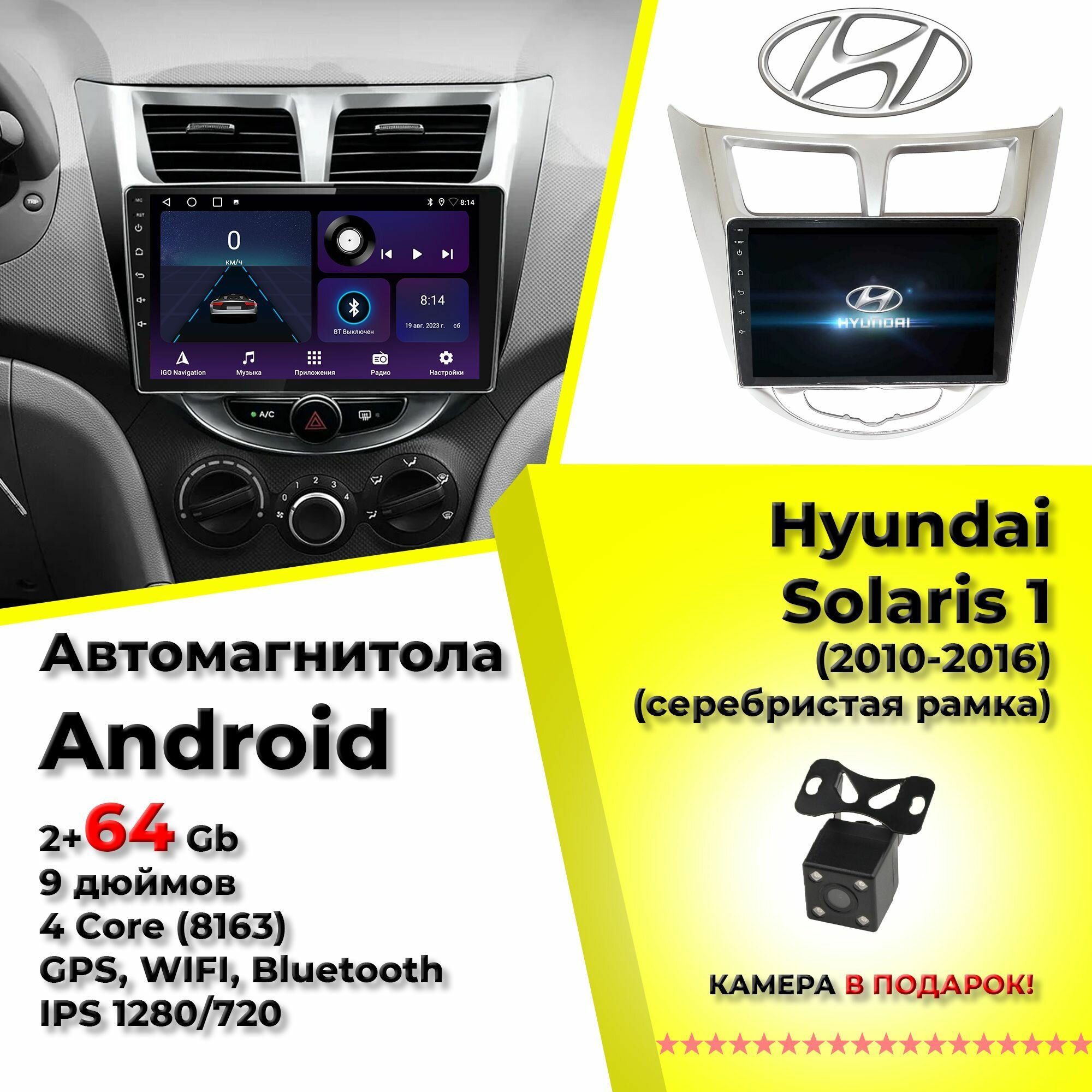 Автомагнитола для Hyundai Solaris 1 (2010-2016) андроид 9 дюймов NAVI SYSTEM 2+64Gb 4Core IPS (8163) информация: