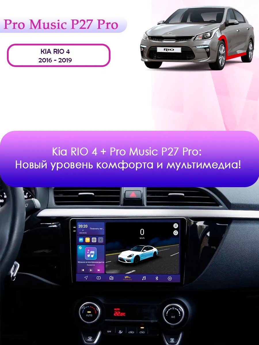 10 цен на Магнитола P27Pro Kia RIO 4 2016-2019 4+64 Gb, Bluetooth, FM/AM, GPS