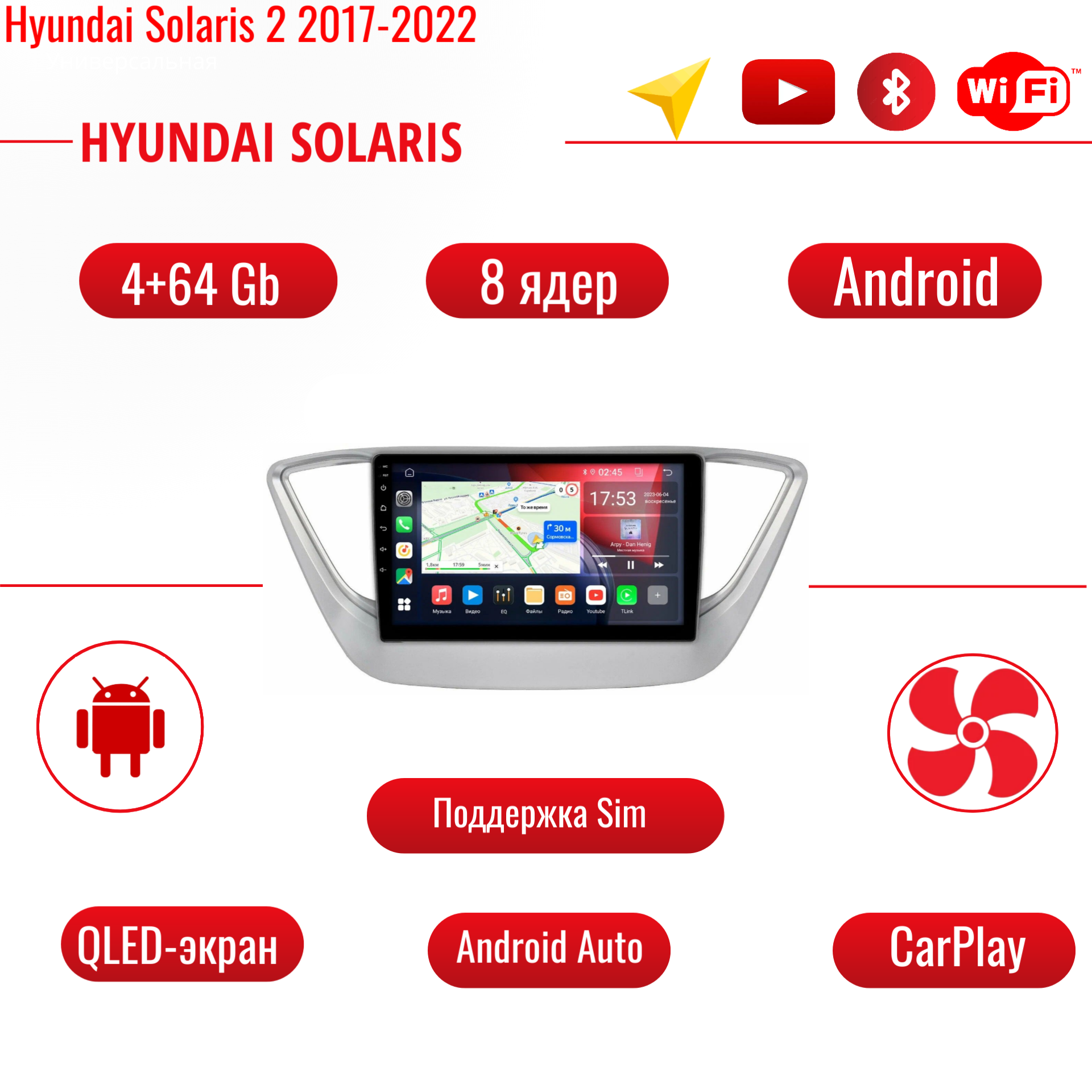 Отзывы на Магнитола 2din для Hyundai Solaris 2 2017-2022 /ядер-8/ CarPlay/SIM/Android /GPS, Bluetooth+ рамка и камера в подарок