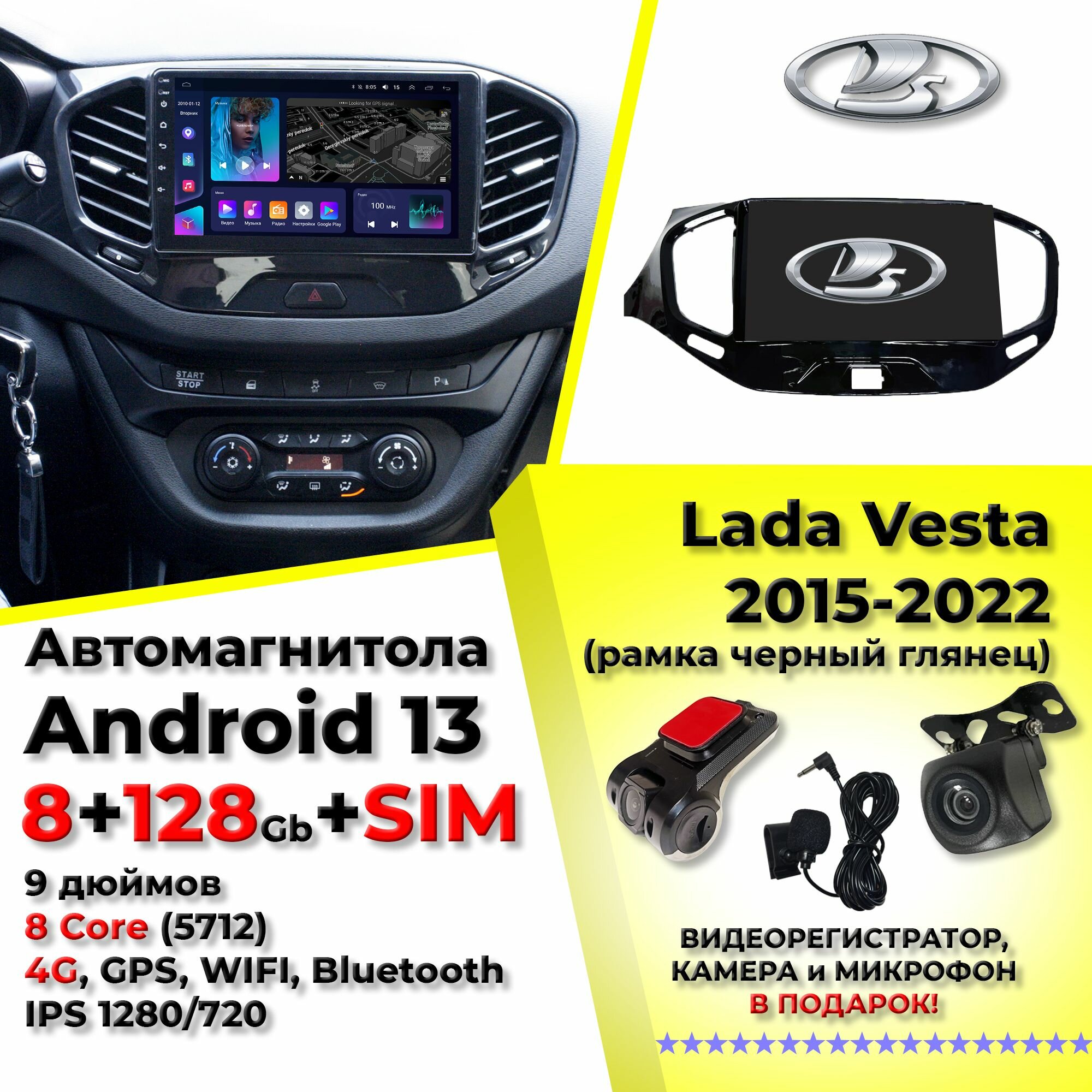 Автомагнитола для Lada Vesta (2015-2022) андроид 9 дюймов 8+128 Gb 8Core IPS 4G (5712) информация: