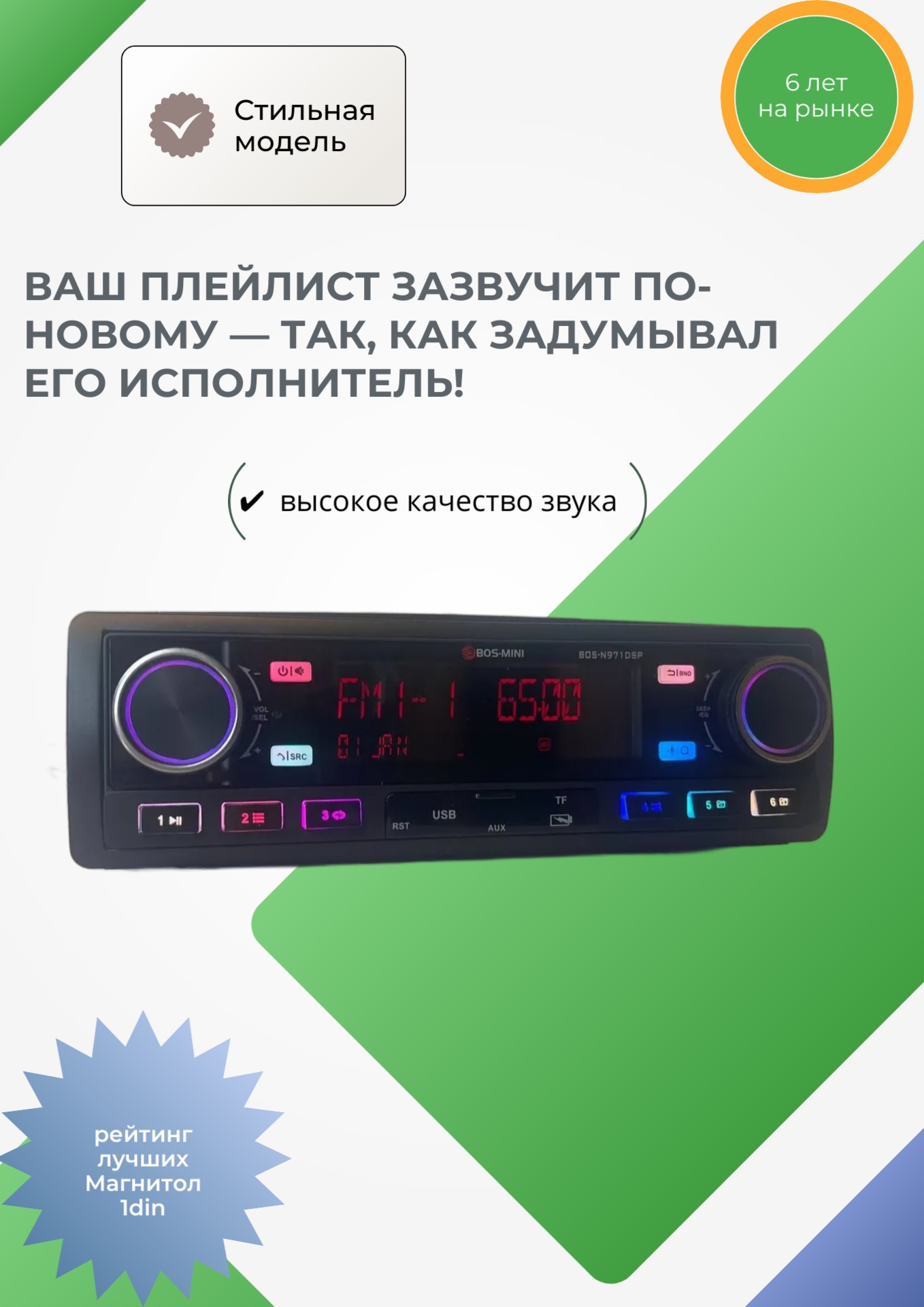Автомагнитола Bos-Mini-N971DSP 1DIN, Bluetooth, Aux, USB и Type-C , проц DSP , RGB экран ,9 выходов RCA, съемная панель информация: