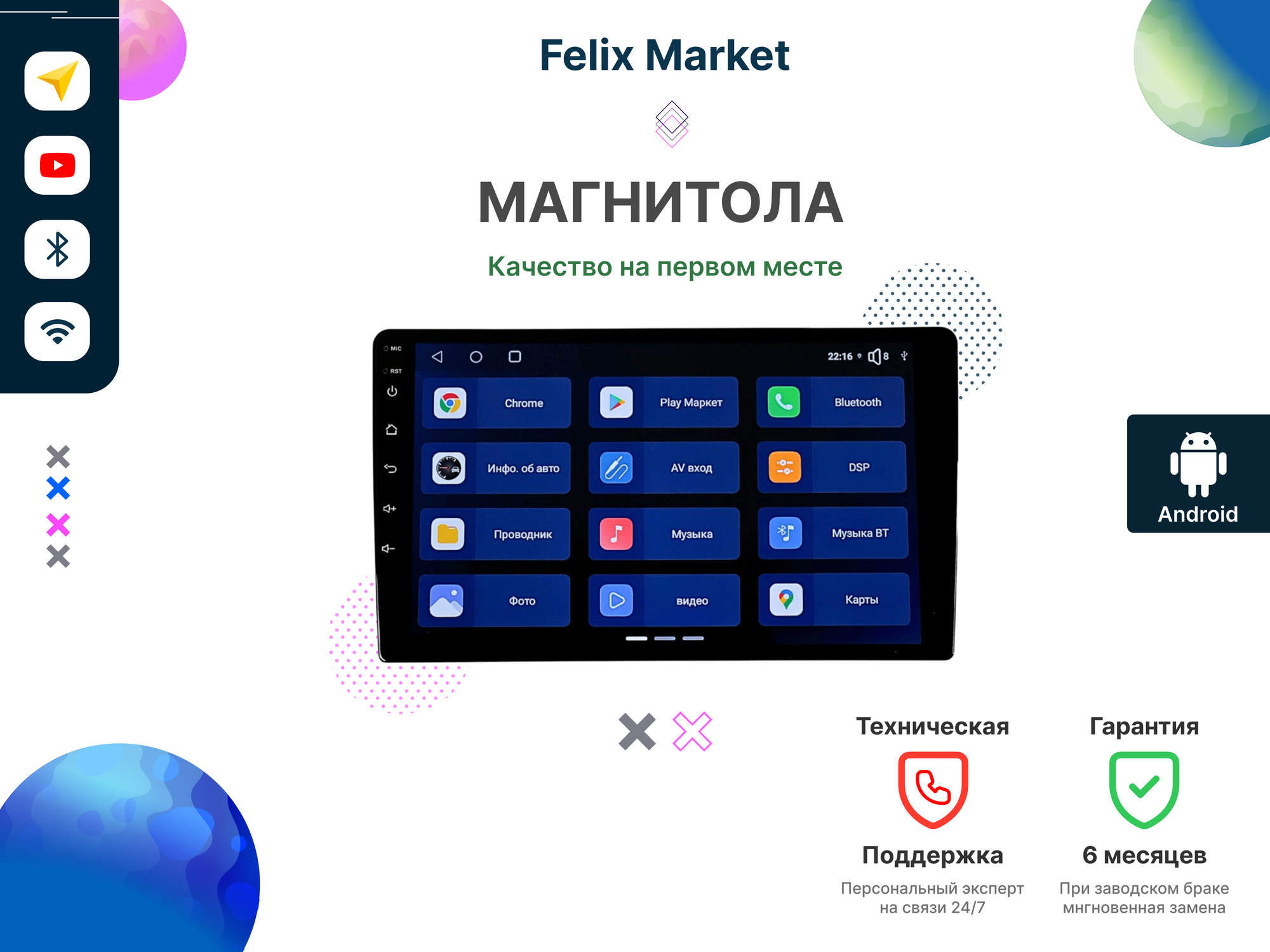 Магнитола для автомобиля с экраном 9дюймов 2din android 4+64, WIFI, Bluetooth, GPS+камера заднего вида подарок информация: