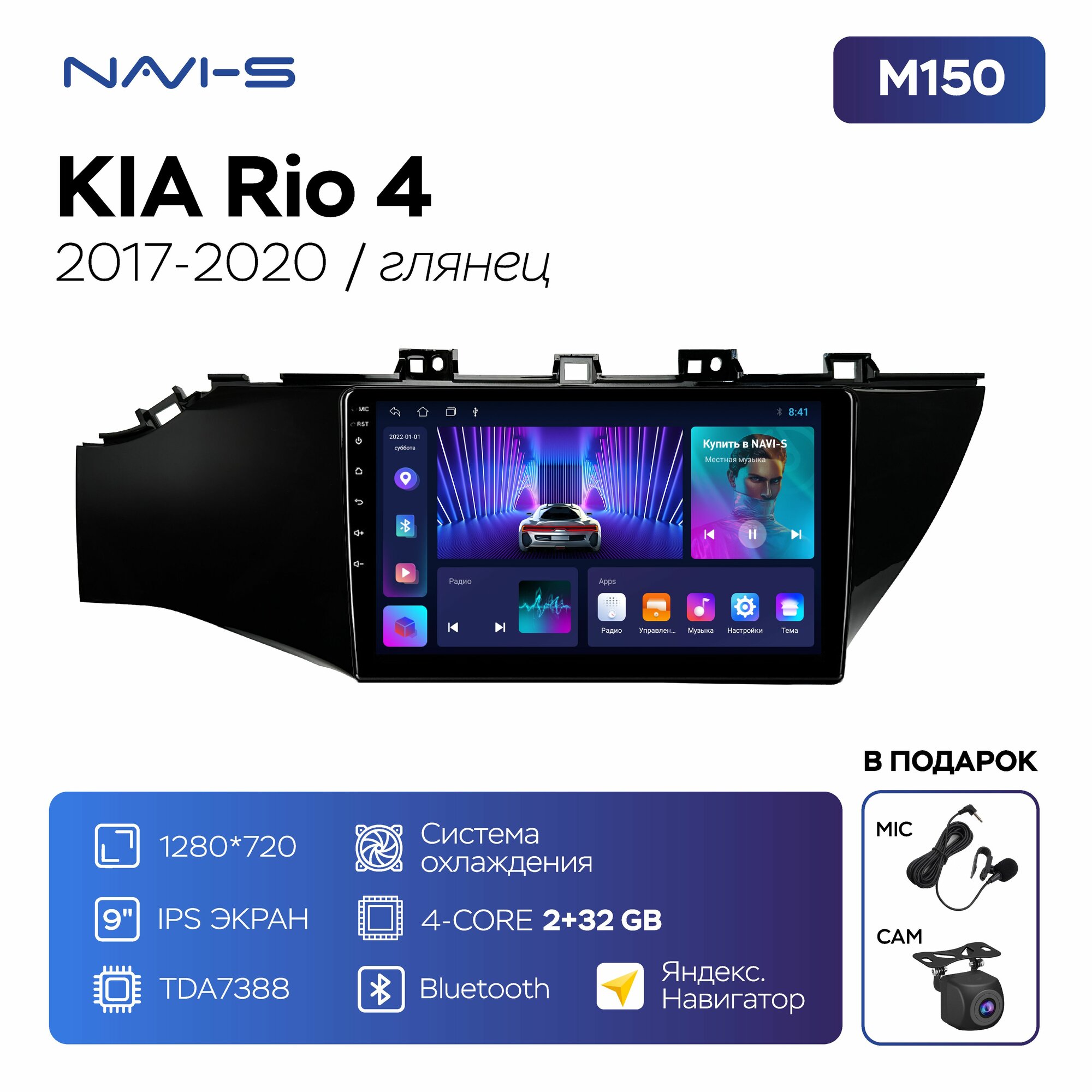 Автомагнитола Mekede M150 для Kia Rio 4 FB (Киа Рио 4 ФБ) 2017 - 2020 глянец информация:
