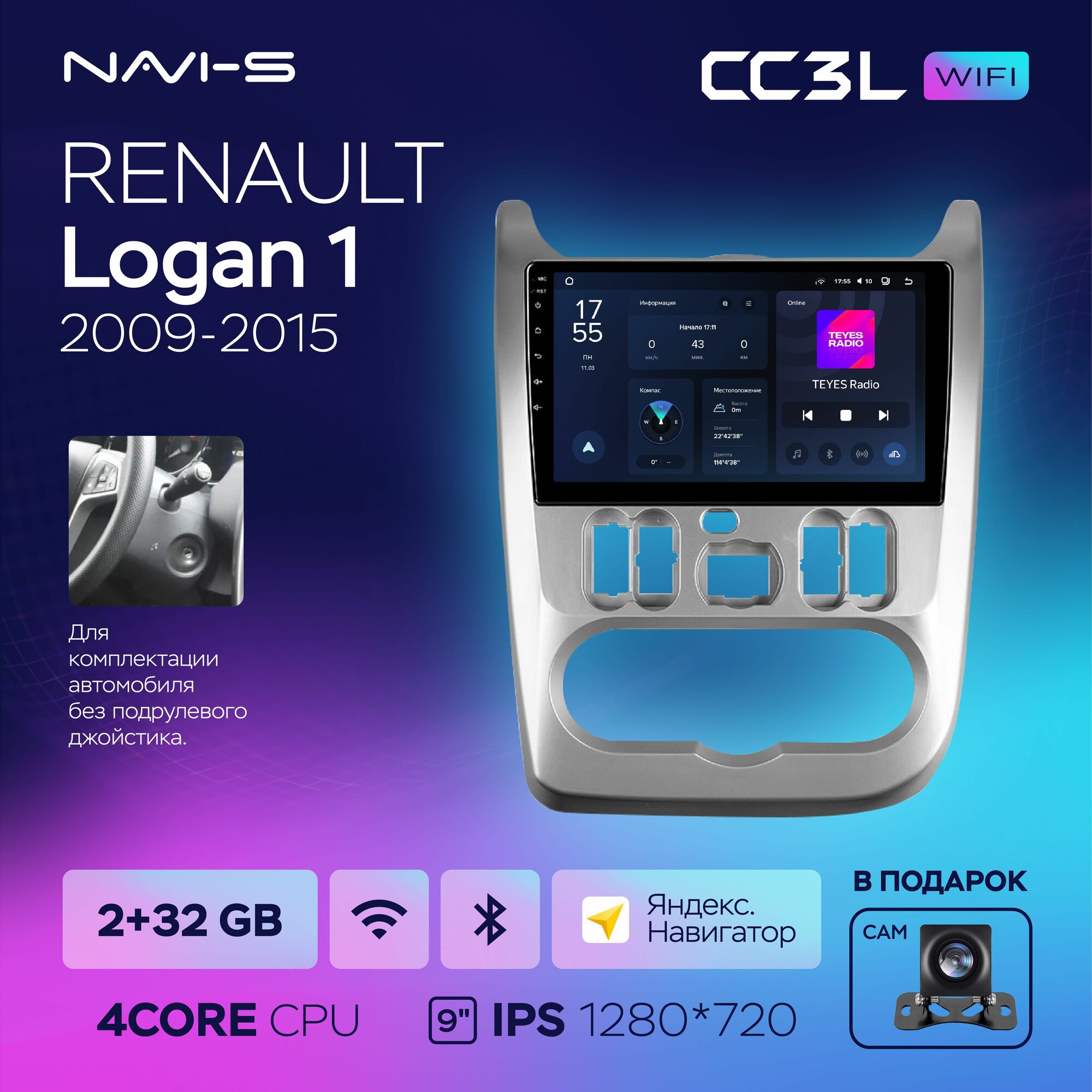 Автомагнитола Teyes CC3L Wi-Fi 2/32GB для Renault Logan 1 2009 - 2015 для комплектации авто без подрулевого джойстика