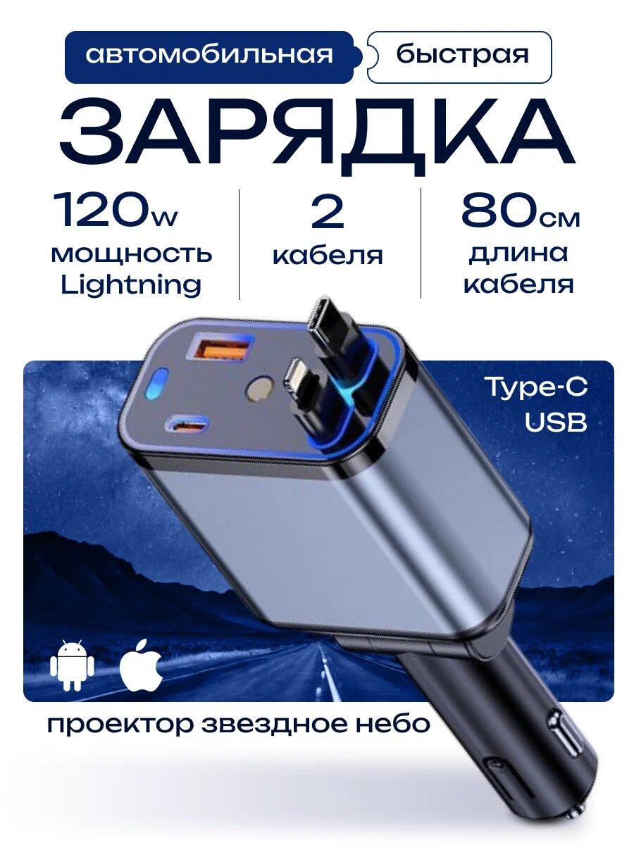 Автомобильное зарядное устройство "Звездное небо", для Apple и Android, 120W информация:
