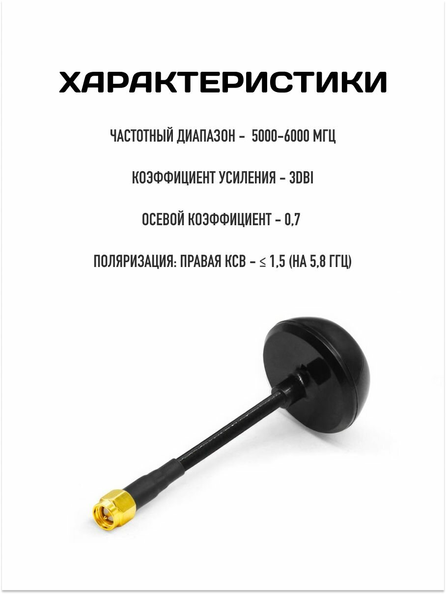 Антенна SMA(male) для FPV приемника / Всенаправленная антенна на частоту 4.9-5.2 информация:
