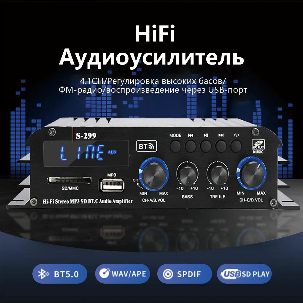 Усилитель звука, двухканальный усилитель для авто аудио, сабвуфера, S 299, колонок магнитолы800BT+800BT информация: