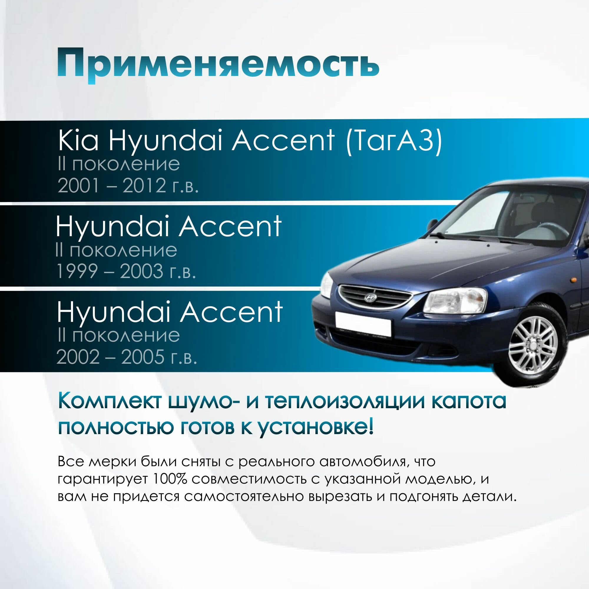Комплект шумо и теплоизоляции капота Hyundai Accent 2 ТагАЗ бутилкаучуковая основа с фольгой 2 мм вспененный каучук информация: