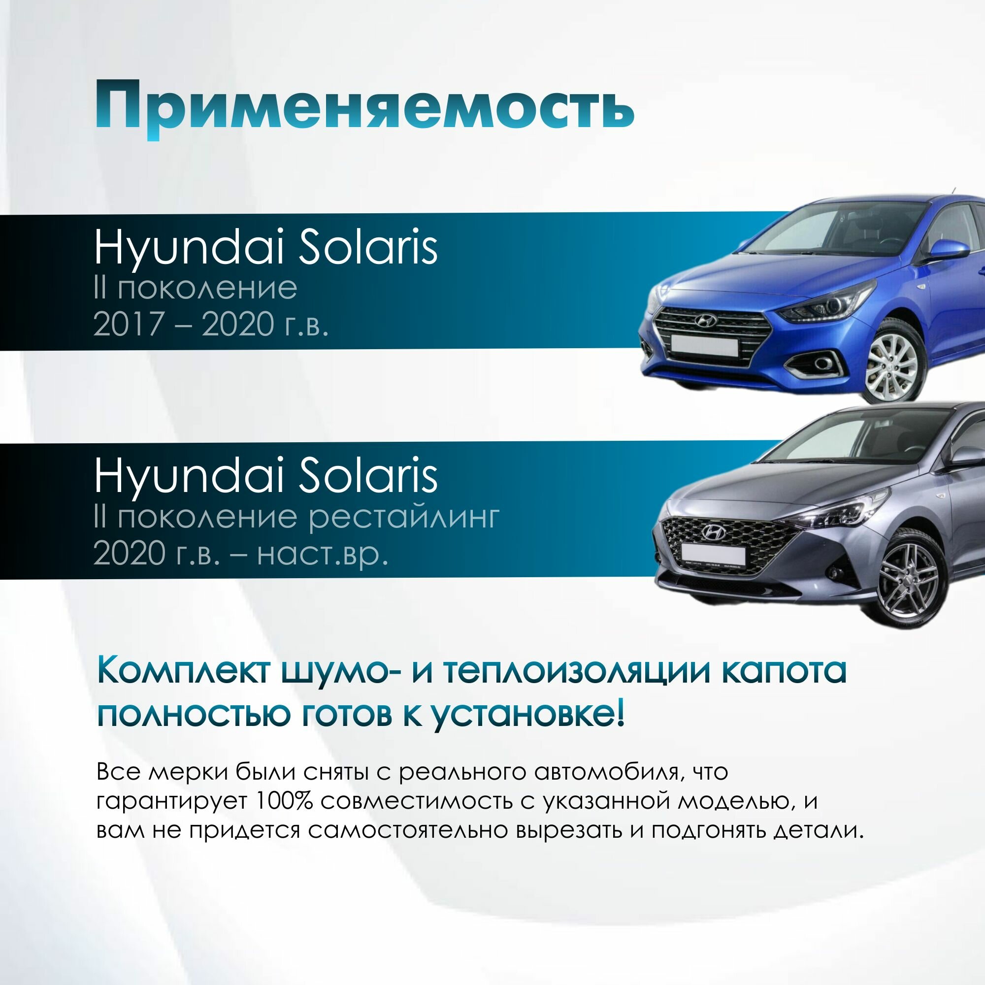 Комплект шумо и теплоизоляции капота Hyundai Solaris 2 бутилкаучуковая основа с фольгой 2 мм вспененный каучук 10 мм информация: