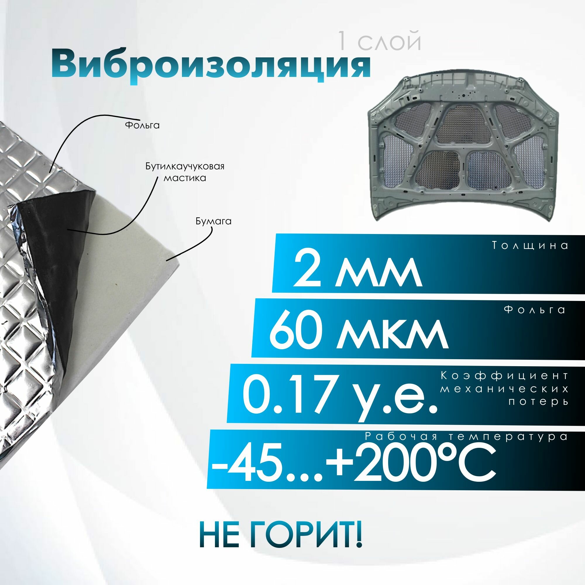 Комплект шумо и теплоизоляции капота Chevrolet Lacetti бутилкаучуковая основа с фольгой 2 мм вспененный каучук 10 мм информация: