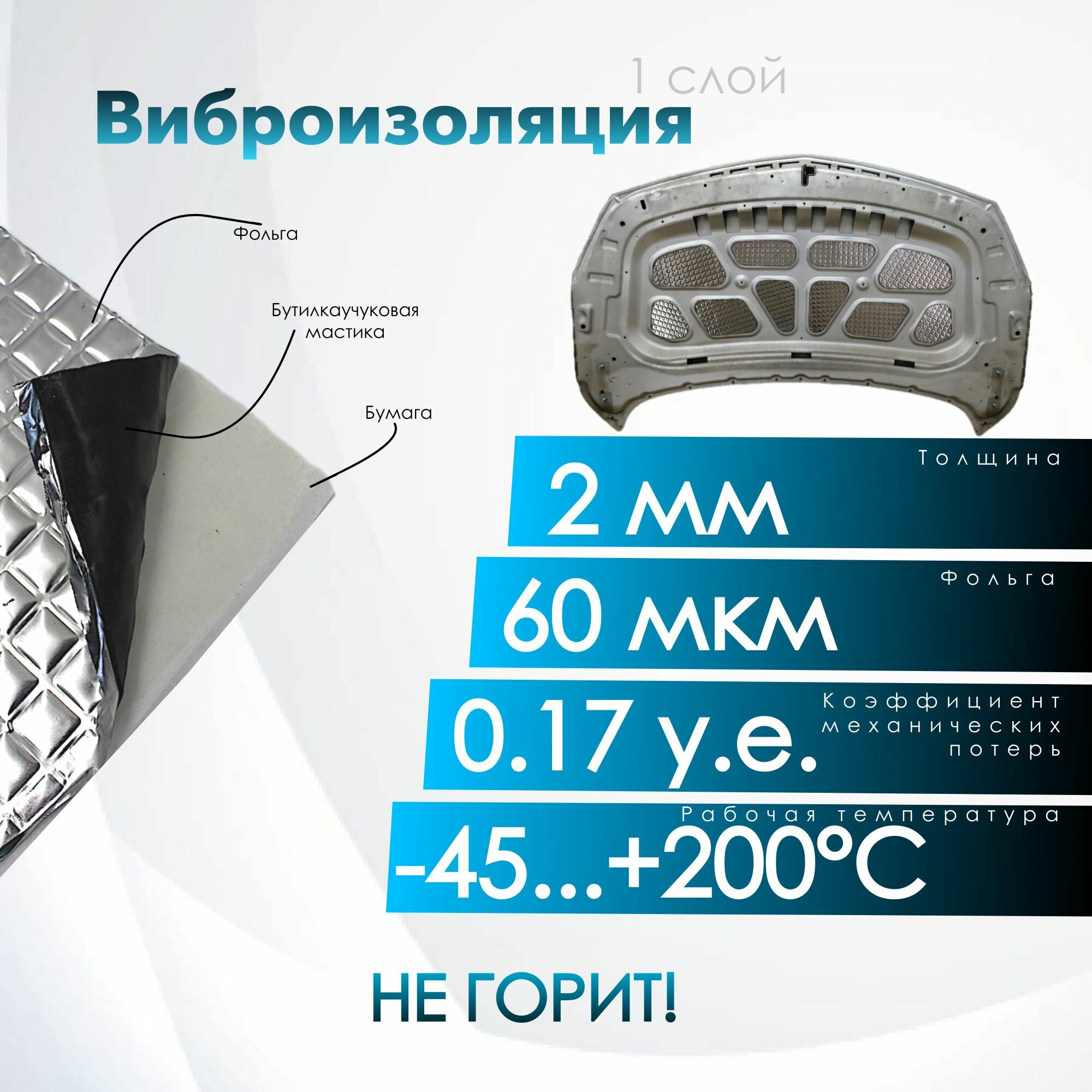Комплект шумо и теплоизоляции капота Chevrolet Lacetti бутилкаучуковая основа с фольгой 2 мм вспененный каучук 10 мм 3 650 ₽