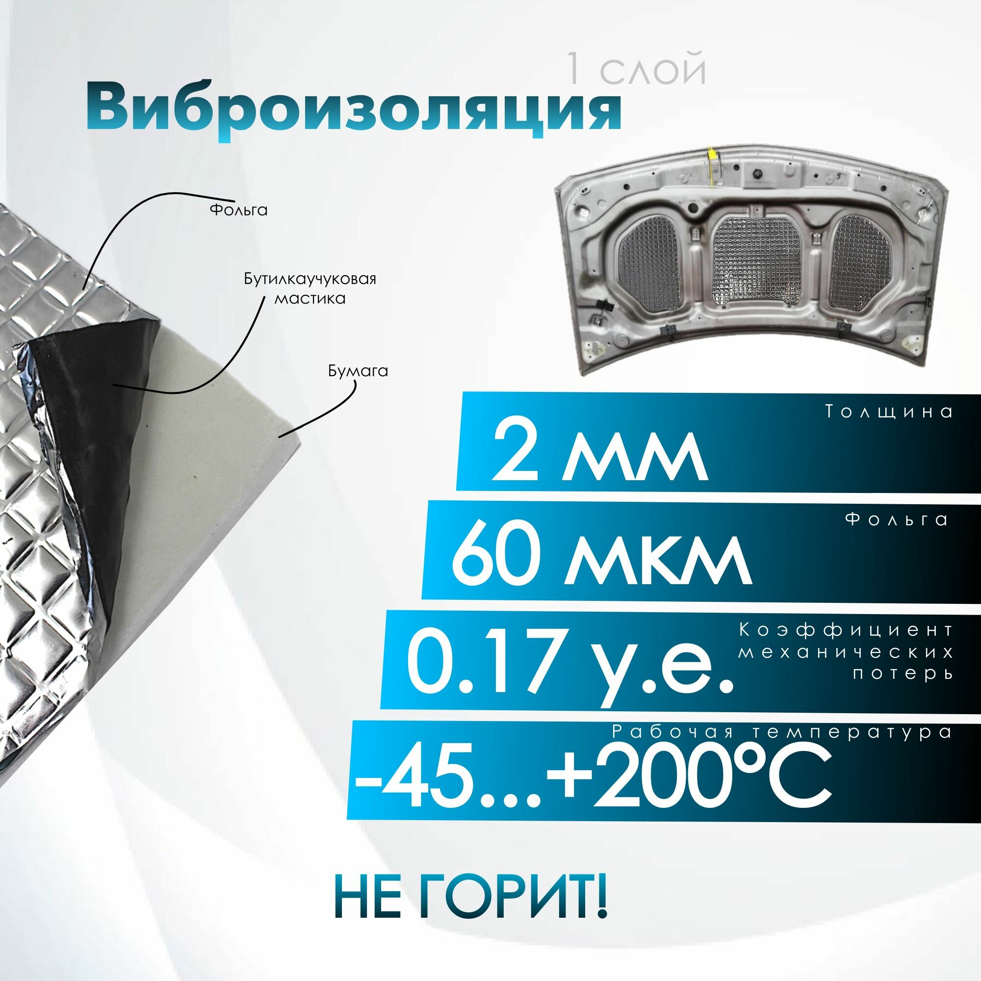 Комплект шумо и теплоизоляции капота Chevrolet Lacetti бутилкаучуковая основа с фольгой 2 мм вспененный каучук 10 мм 3 650 ₽