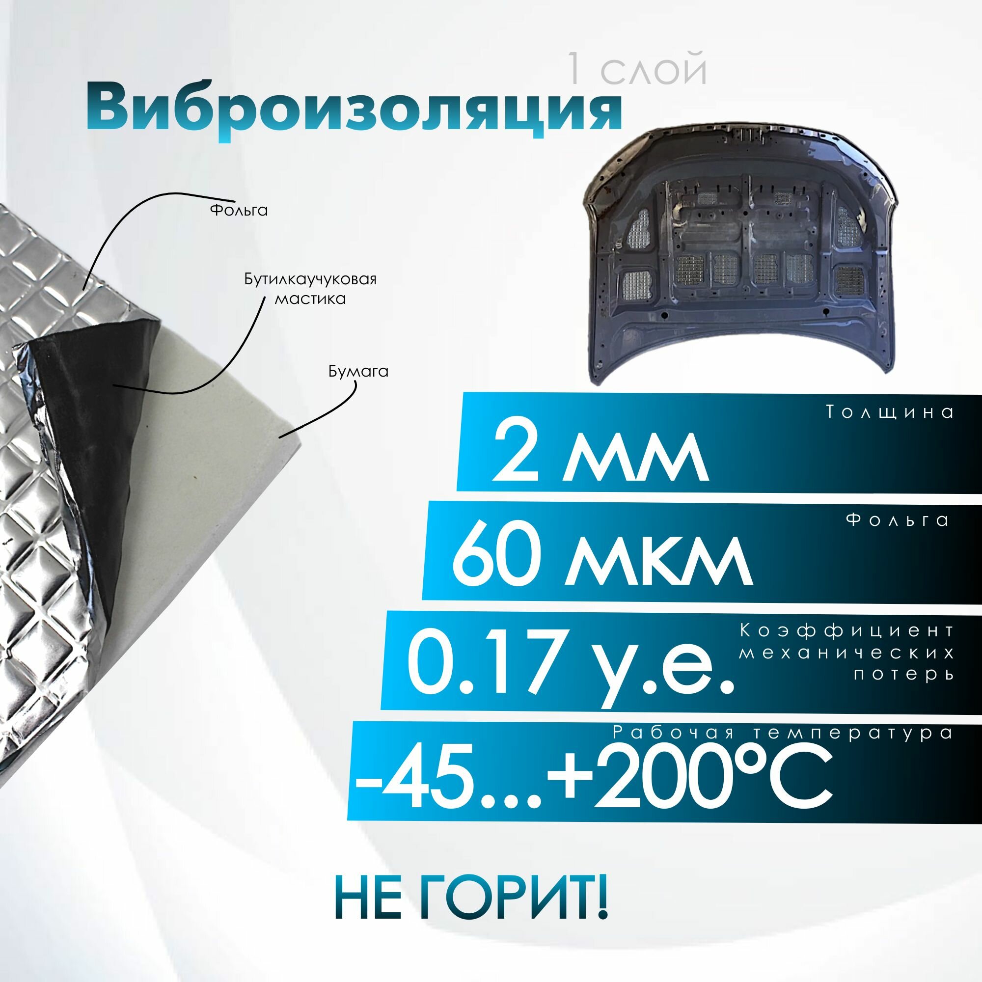 Комплект шумо и теплоизоляции капота Chevrolet Lacetti бутилкаучуковая основа с фольгой 2 мм вспененный каучук 10 мм 3 650 ₽