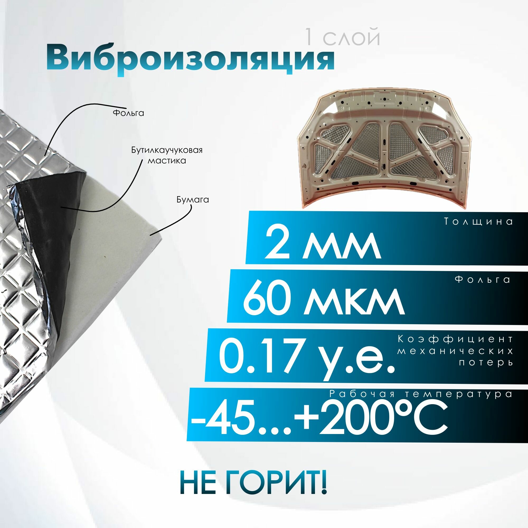 Комплект шумо и теплоизоляции капота Chevrolet Lacetti бутилкаучуковая основа с фольгой 2 мм вспененный каучук 10 мм 3 650 ₽