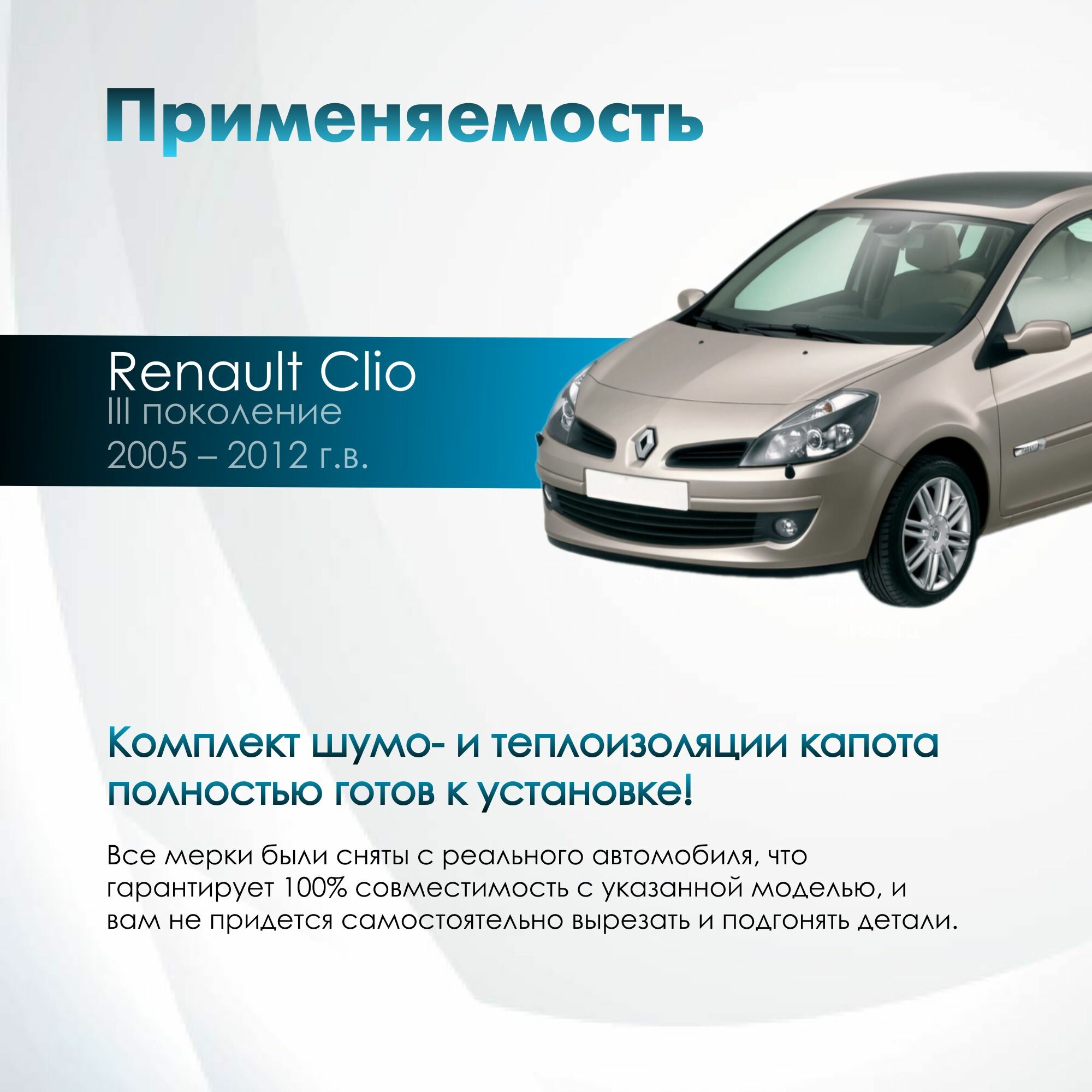 Отзывы на Комплект шумо и теплоизоляции капота Renault Clio 3 бутилкаучуковая основа с фольгой 2 мм вспененный каучук 10 мм