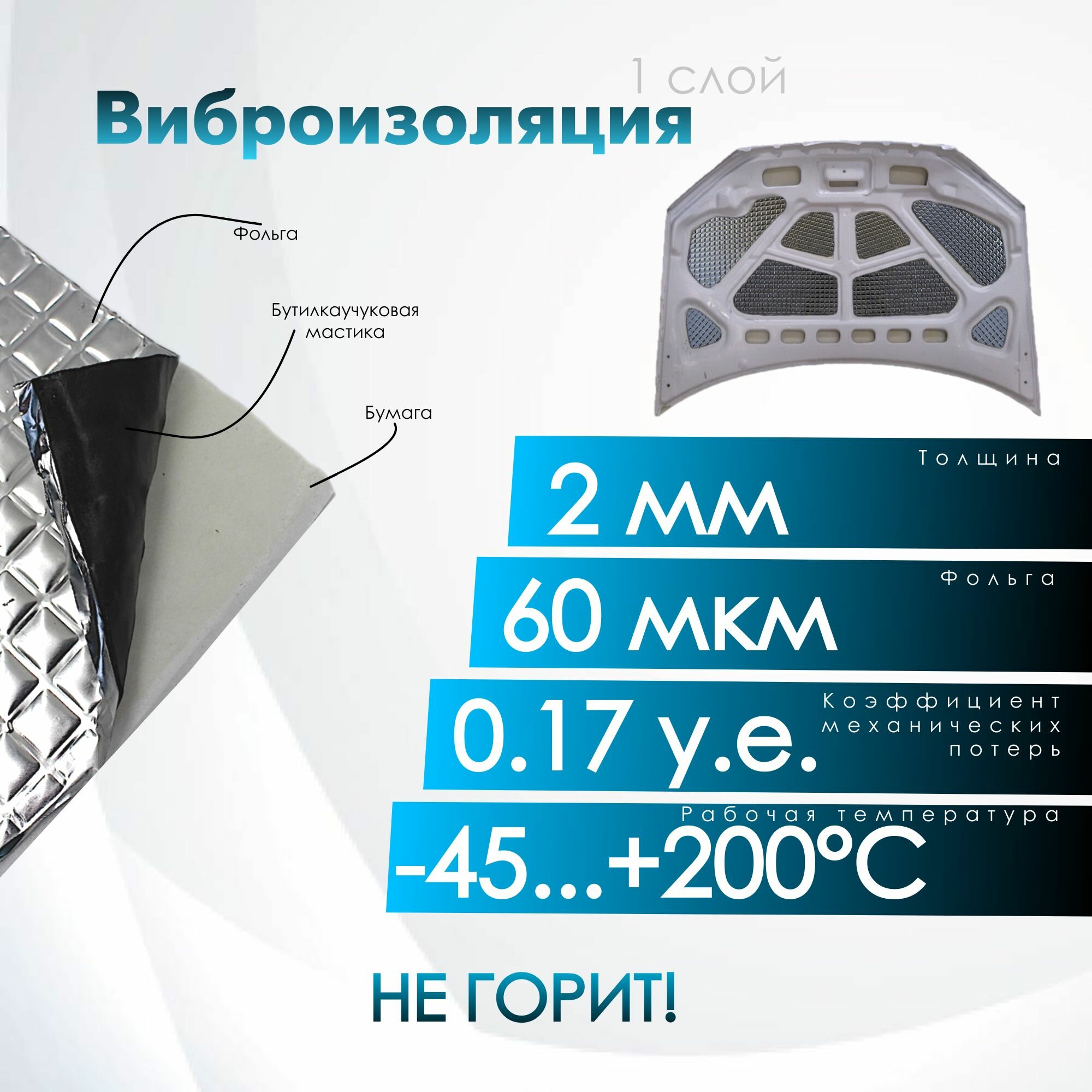 10 цен на Комплект шумо и теплоизоляции капота Лада Калина 1 бутилкаучуковая основа с фольгой 2 мм вспененный каучук 10 мм