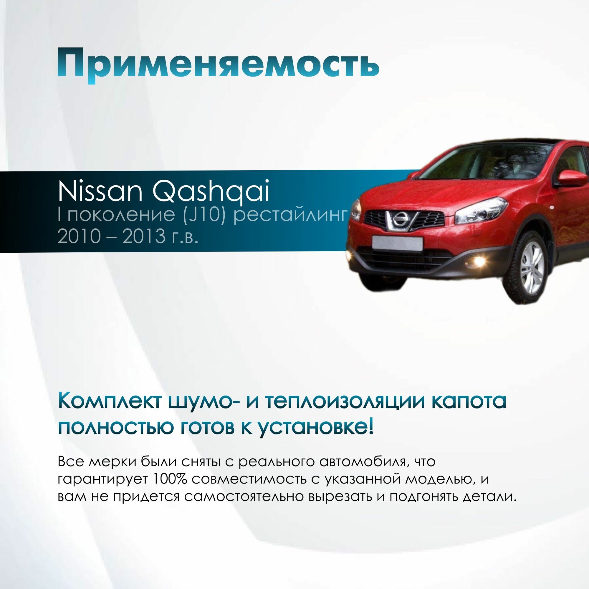 10 цен на Комплект шумо и теплоизоляции капота Nissan Qashqai J10 рестайлинг бутилкаучуковая основа с фольгой вспененный каучук