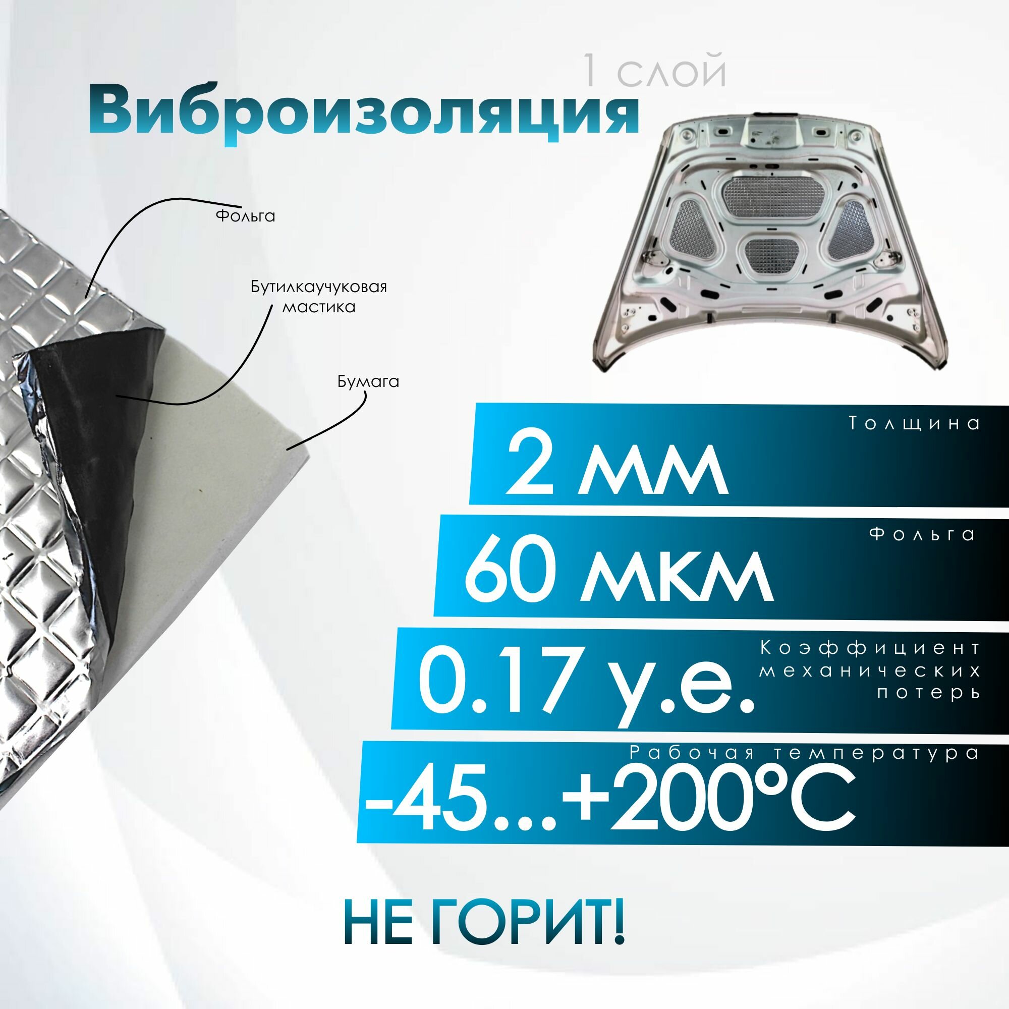 Комплект шумо и теплоизоляции капота Chevrolet Lacetti бутилкаучуковая основа с фольгой 2 мм вспененный каучук 10 мм 3 650 ₽