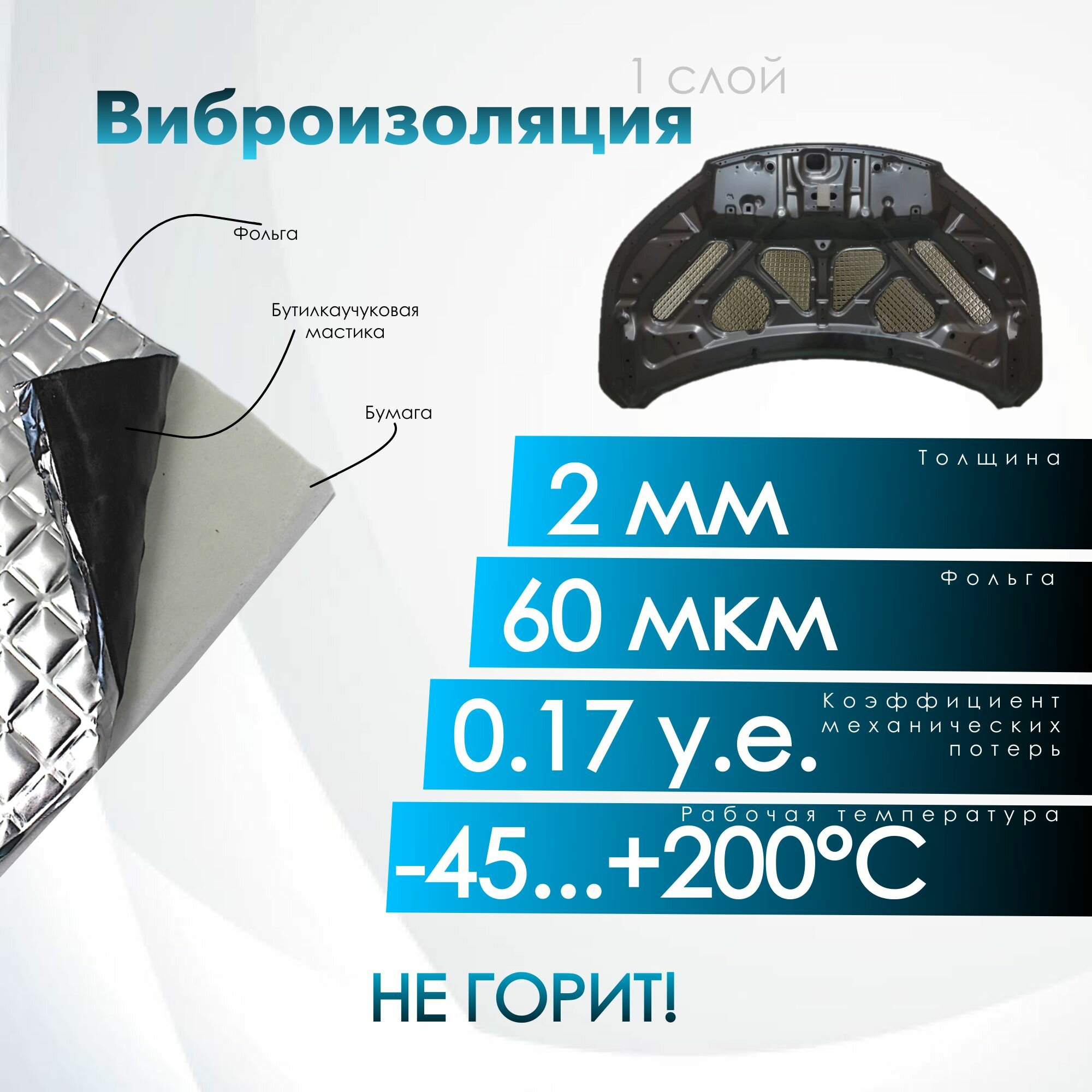 Комплект шумо и теплоизоляции капота Chevrolet Lacetti бутилкаучуковая основа с фольгой 2 мм вспененный каучук 10 мм 3 650 ₽