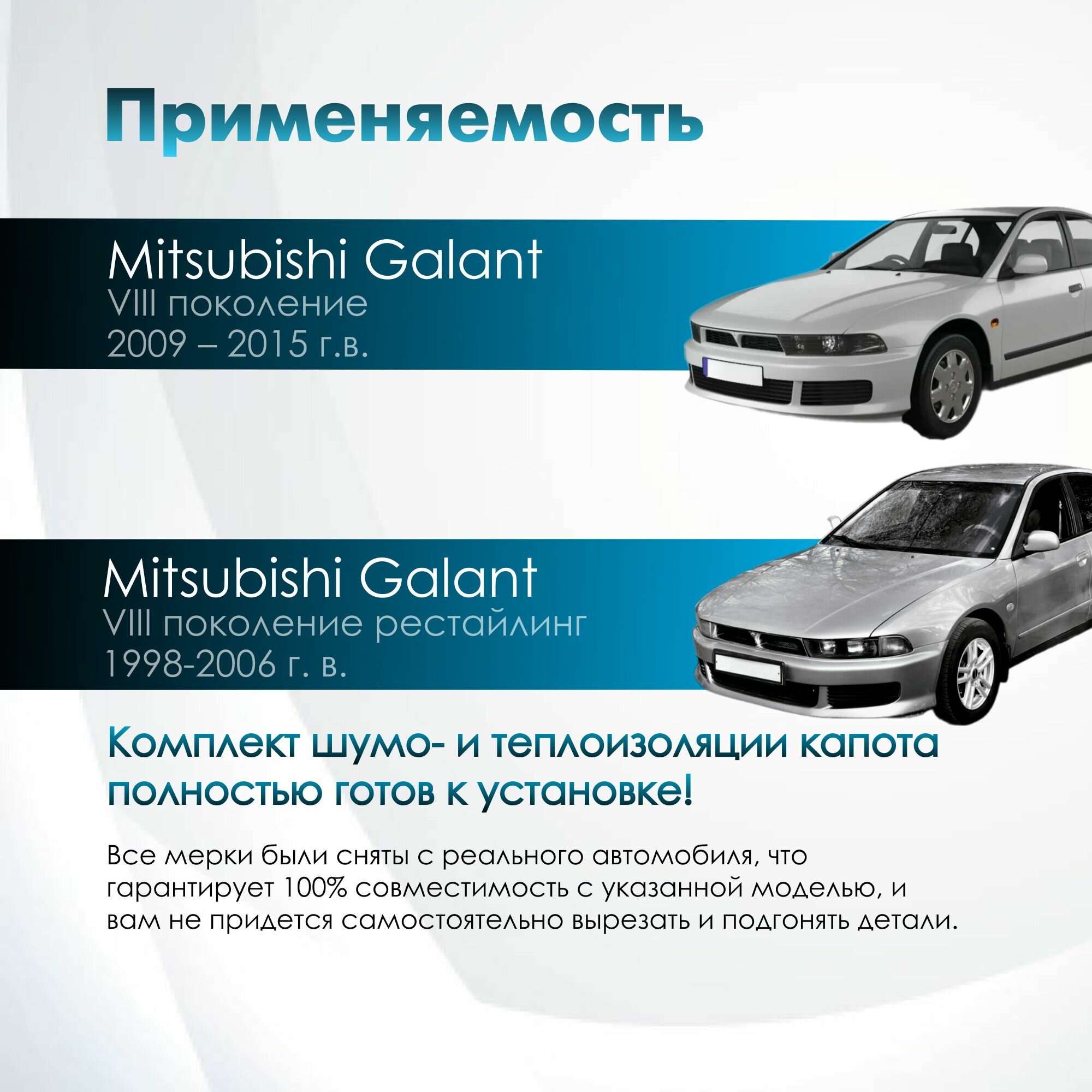Комплект шумо и теплоизоляции капота Mitsubishi Galant 8 бутилкаучуковая основа с фольгой 2 мм вспененный каучук 10 мм информация: