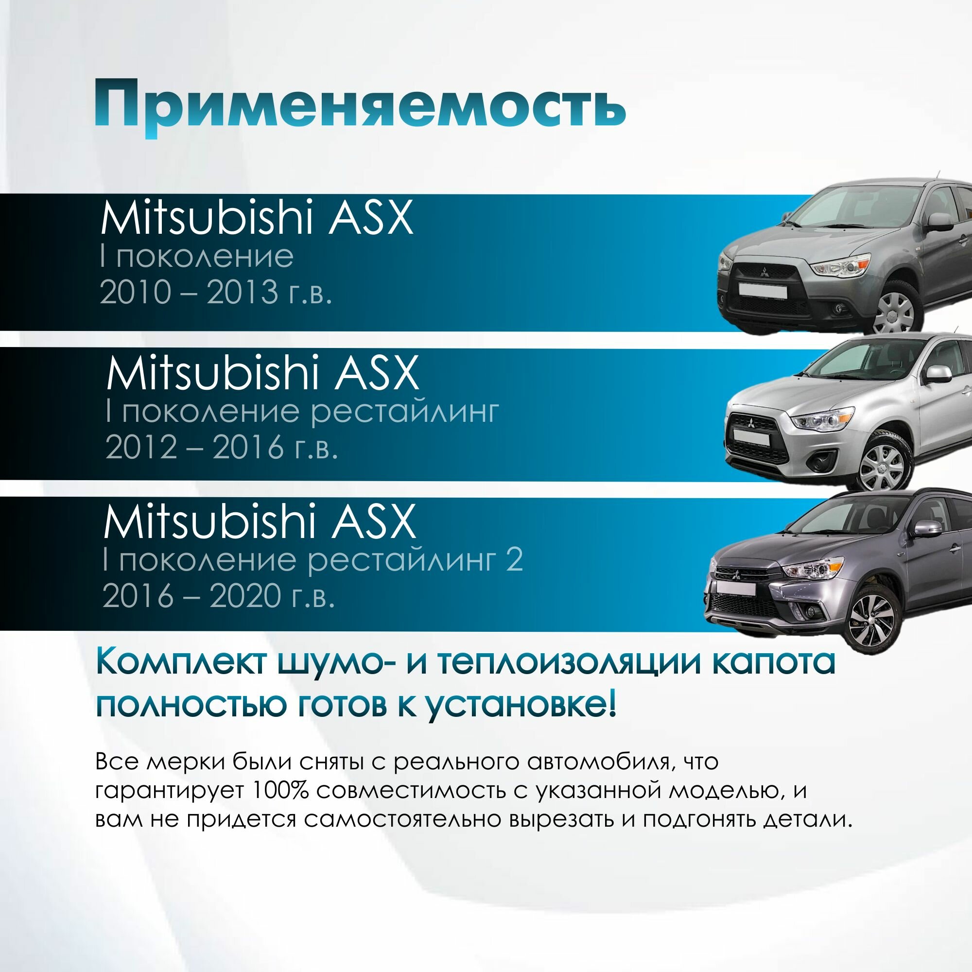 Комплект шумо и теплоизоляции капота Mitsubishi ASX бутилкаучуковая основа с фольгой 2 мм вспененный каучук 10 мм информация: