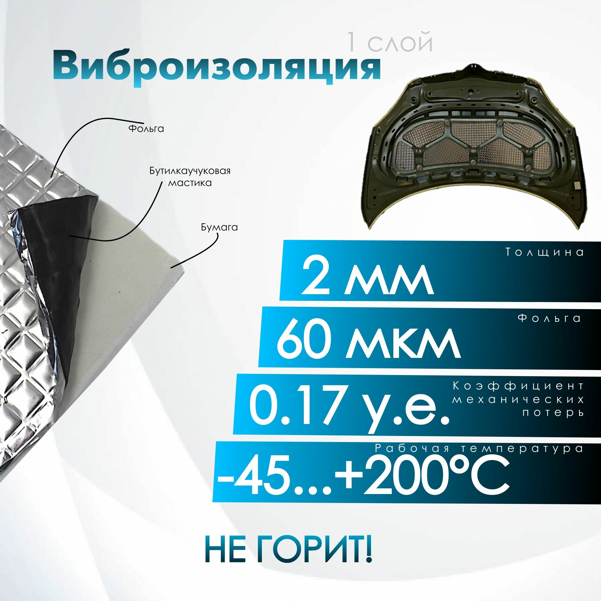 Комплект шумо и теплоизоляции капота Chevrolet Lacetti бутилкаучуковая основа с фольгой 2 мм вспененный каучук 10 мм 3 650 ₽