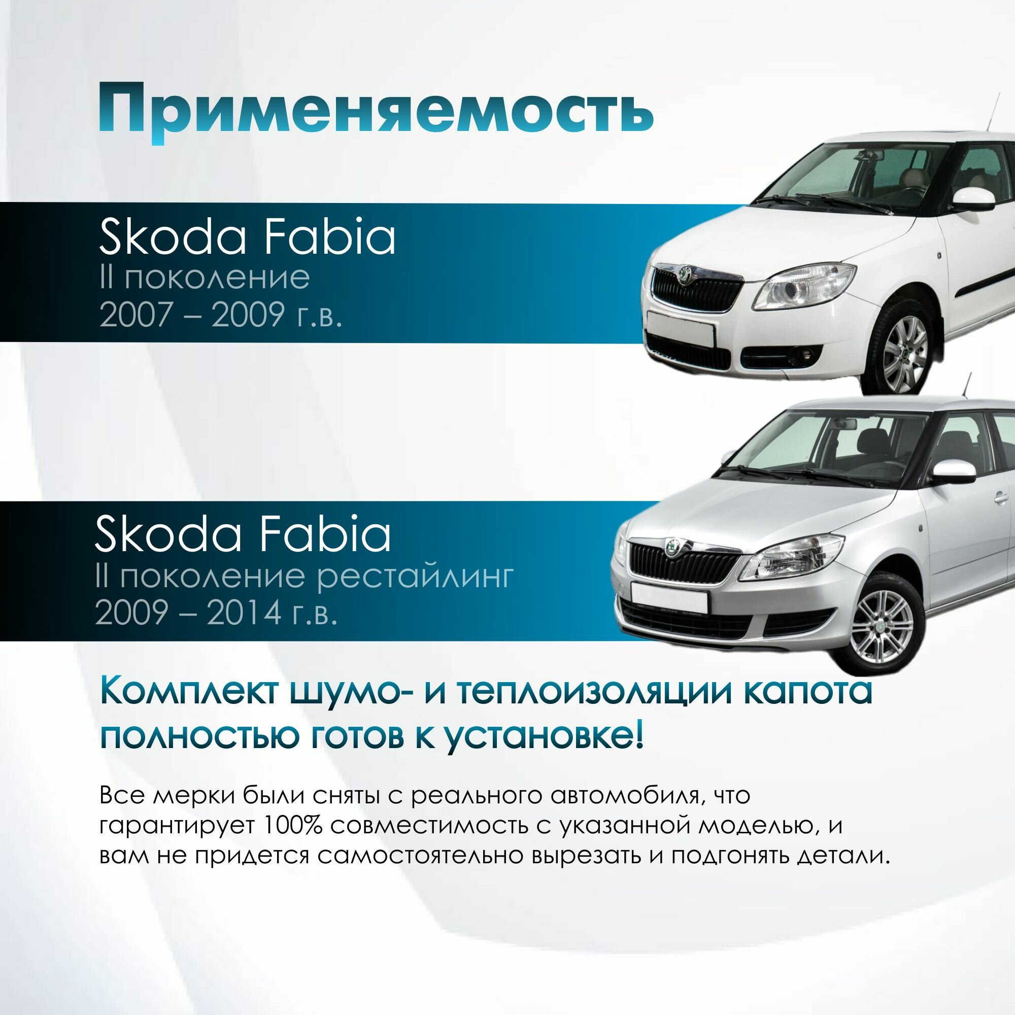 Комплект шумо и теплоизоляции капота Skoda Fabia 2 2007-14 бутилкаучуковая основа с фольгой 2 мм вспененный каучук 10 мм информация: