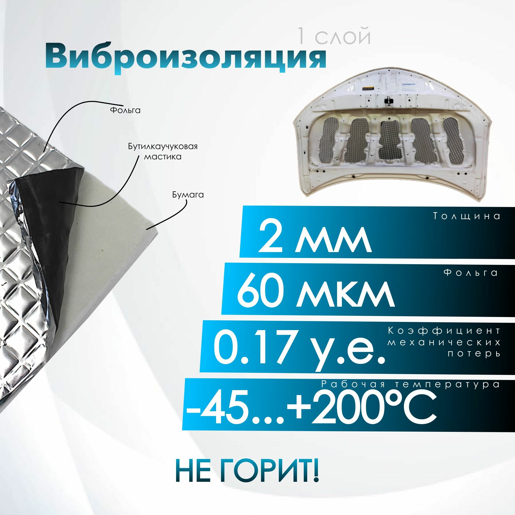 Комплект шумо и теплоизоляции капота Chevrolet Lacetti бутилкаучуковая основа с фольгой 2 мм вспененный каучук 10 мм 3 650 ₽