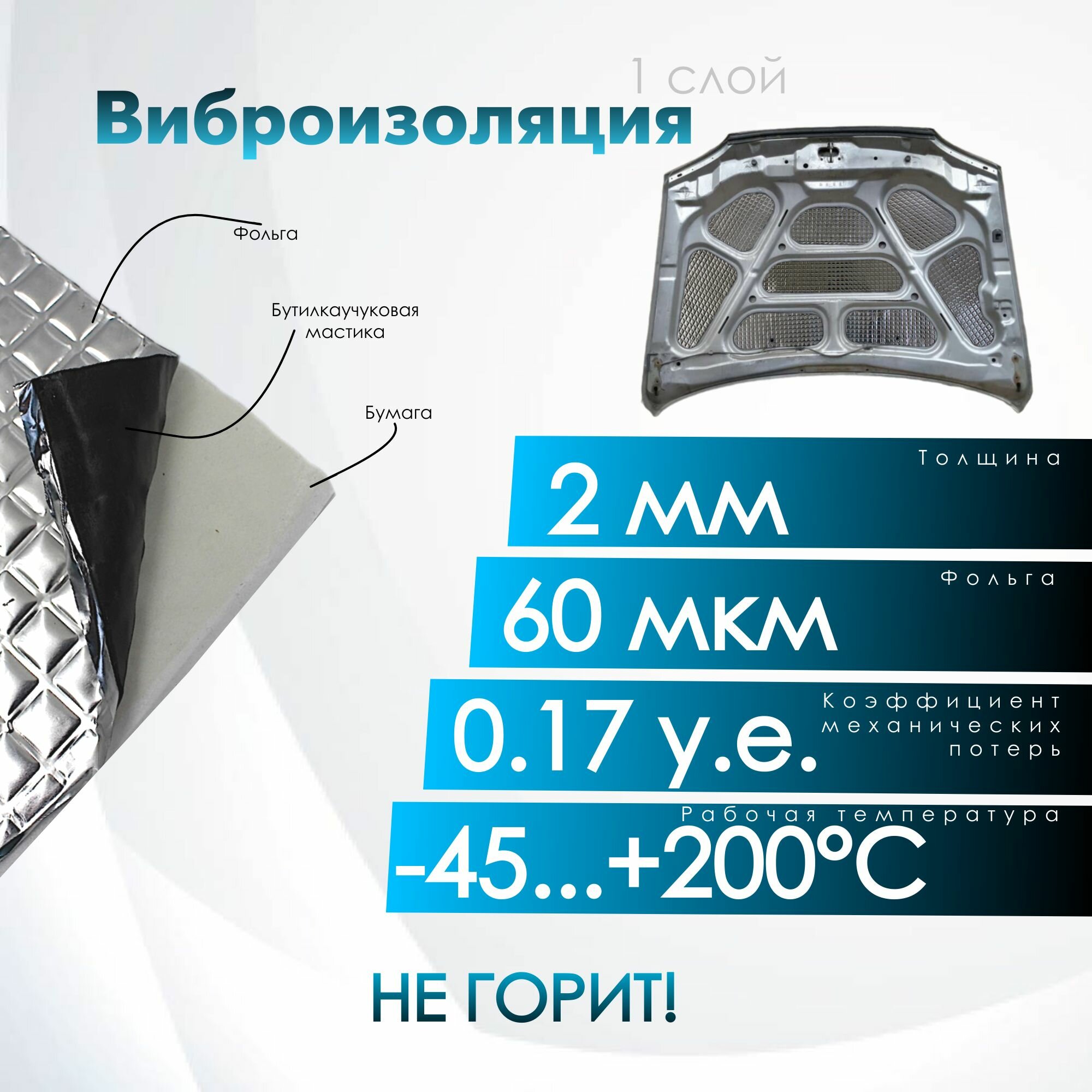 Комплект шумо и теплоизоляции капота Chevrolet Lacetti бутилкаучуковая основа с фольгой 2 мм вспененный каучук 10 мм 3 650 ₽
