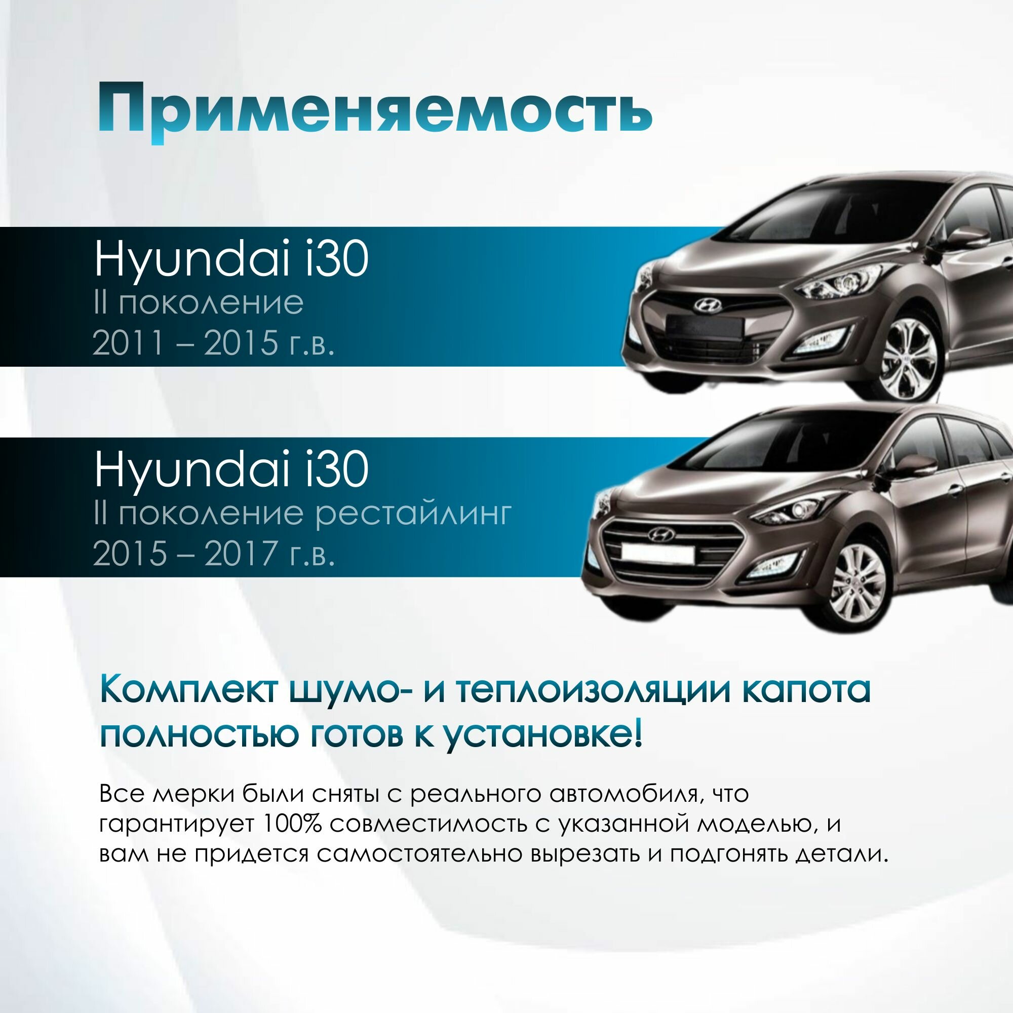 Комплект шумо и теплоизоляции капота Hyundai i30 2 поколение 2011-2017 бутилкаучуковая основа с фольгой 2 мм вспененный каучук 10 мм информация: