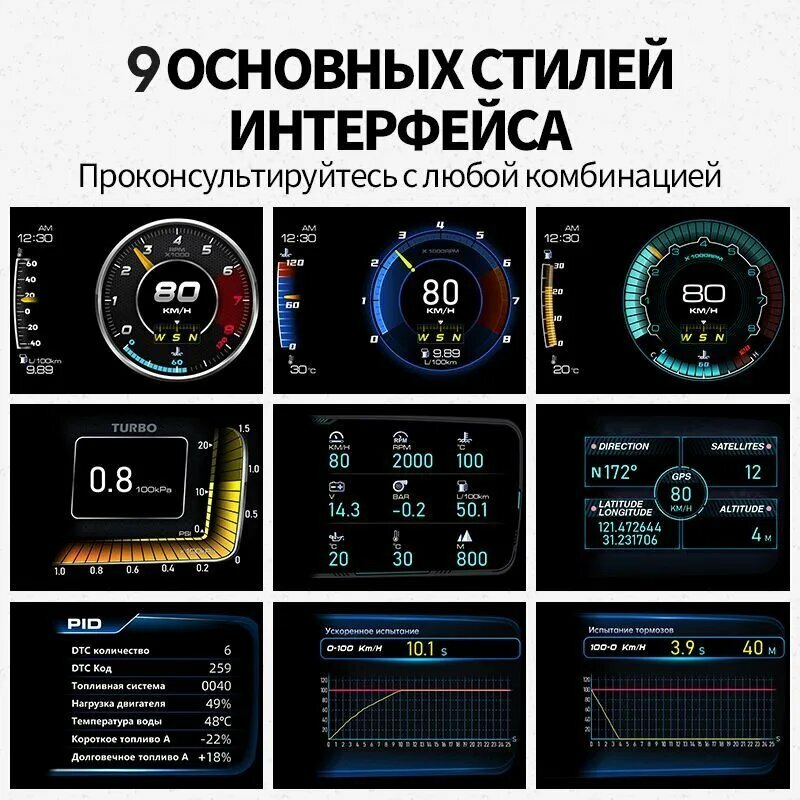 10 цен на Автомобильный HUD OBD2 (русская версия) головной дисплей, многофункциональная приборная панель