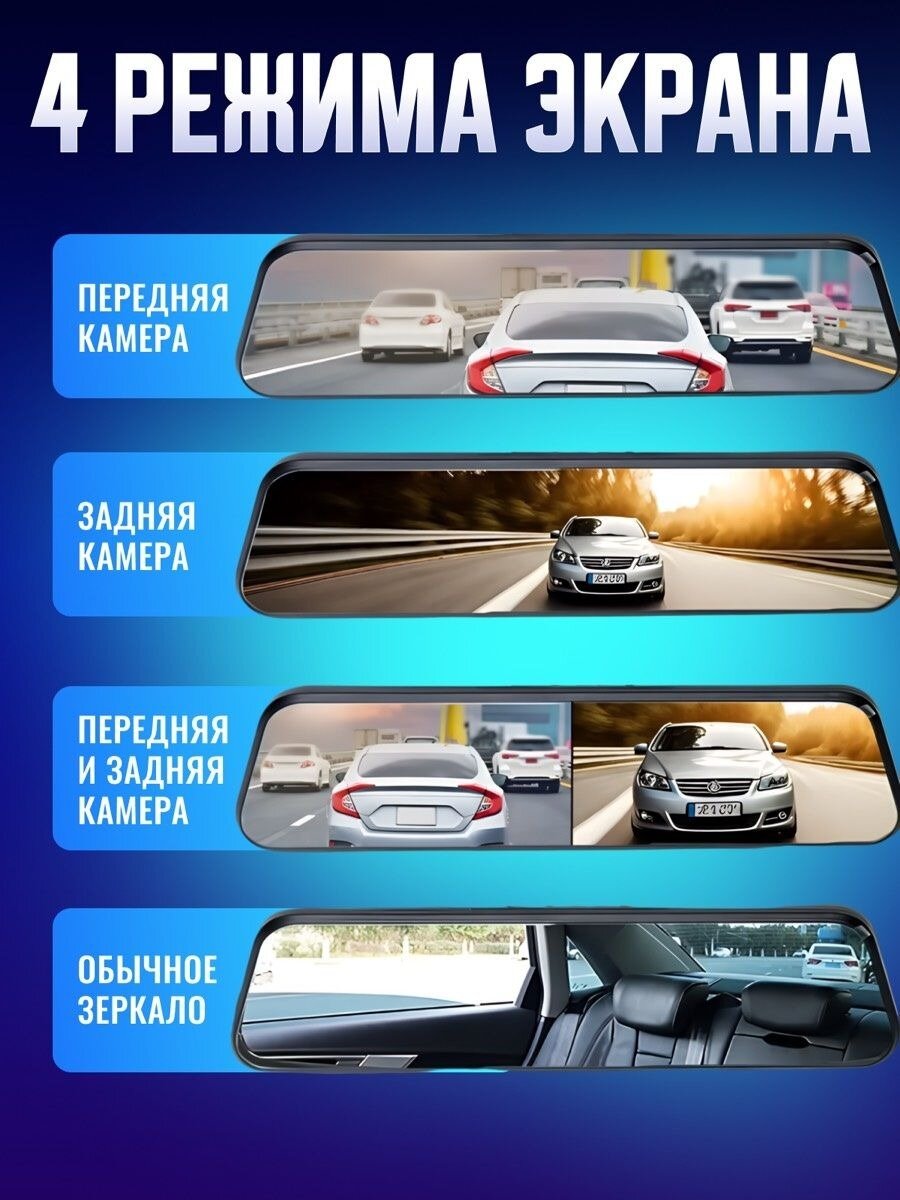 Автомобильный видеорегистратор, с камерой заднего вида, Зеркало заднего вида с видео регистратором, 10-дюймовый экран, G-сенсор информация: