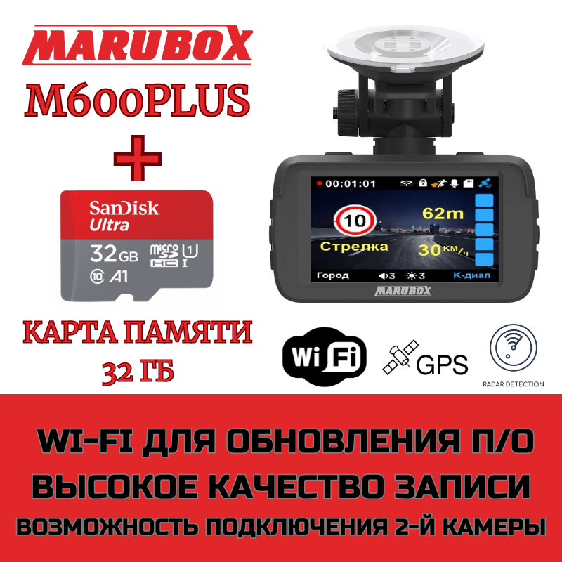 Видеорегистратор с радар-детектором Marubox M600 Plus + доп. камера Marubox M68FHD + карта памяти 32Gb 13 290 ₽