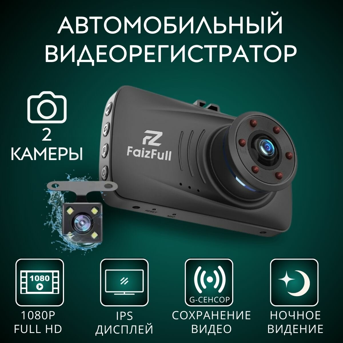 Автомобильный видеорегистратор, с камерой заднего вида, 2 камеры, 1920x1080