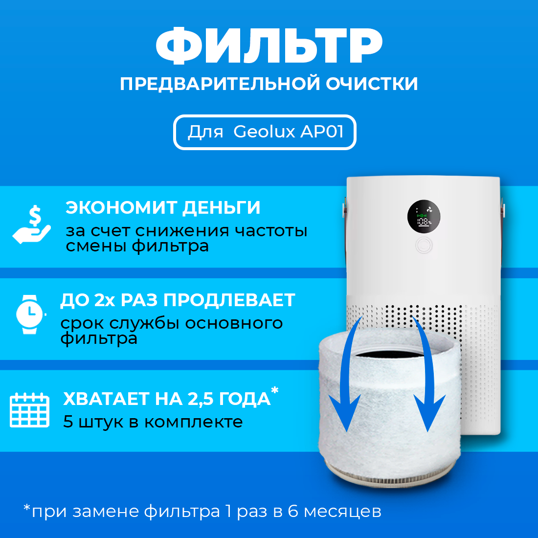 10 цен на Фильтр для очистителя воздуха Geolux AP 01 предварительной очистки, 5 шт. (Префильтр).