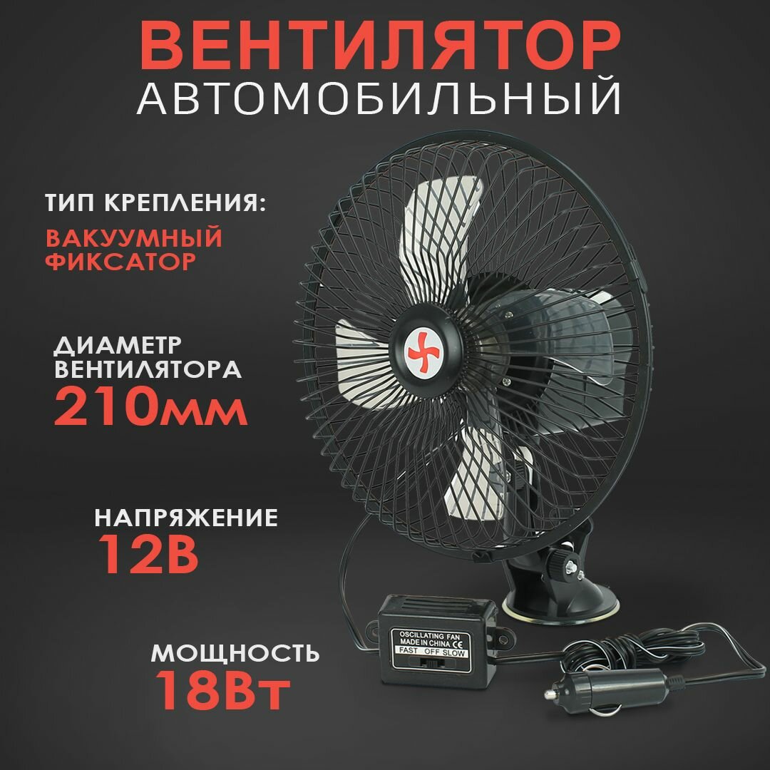 Вентилятор автомобильный с металлической решеткой + вакуумный фиксатор, 210 мм, 12V информация: