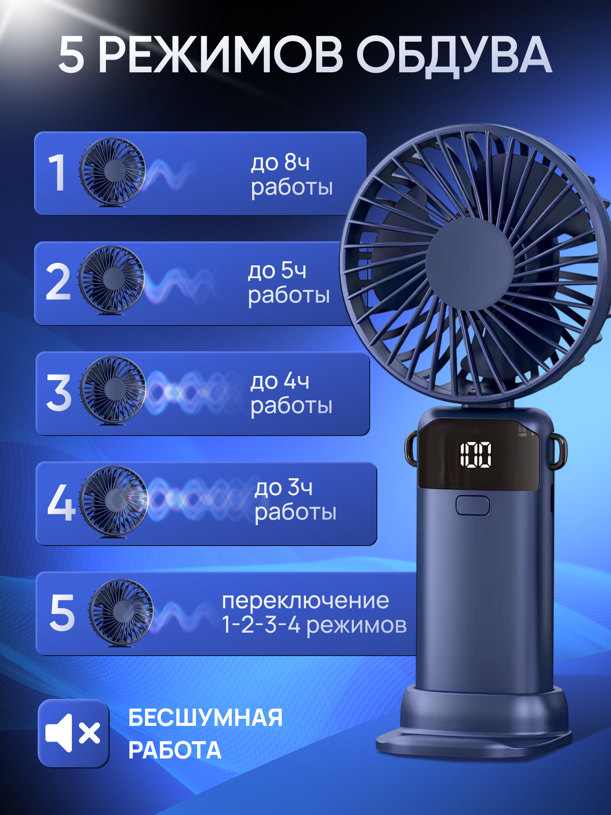 Отзывы на Мини-вентилятор, ручной, беспроводной, аккумуляторный, 5 скоростей, USB зарядка, фиолетовый адаптер в подарок!