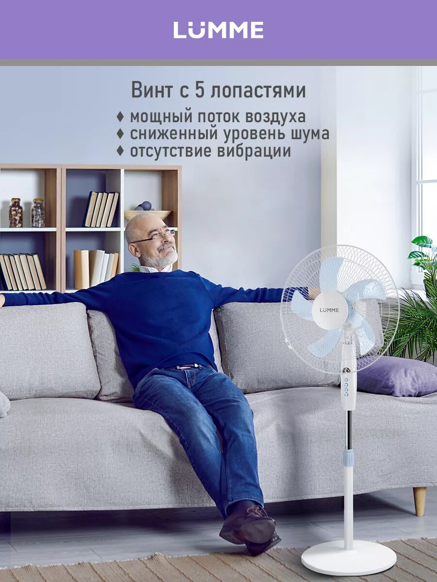 Напольный вентилятор LUMME LU-FN108A белый/голубой информация: