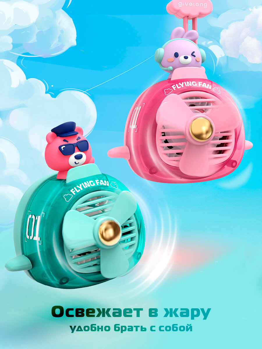 Портативный вентилятор на шею розовый зайка информация: