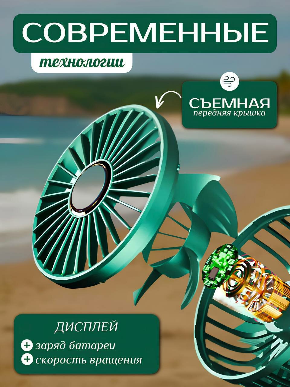 Портативный ручной вентилятор, 2 режима работы, встроенный аккумулятор, подставка для телефона. зеленый информация: