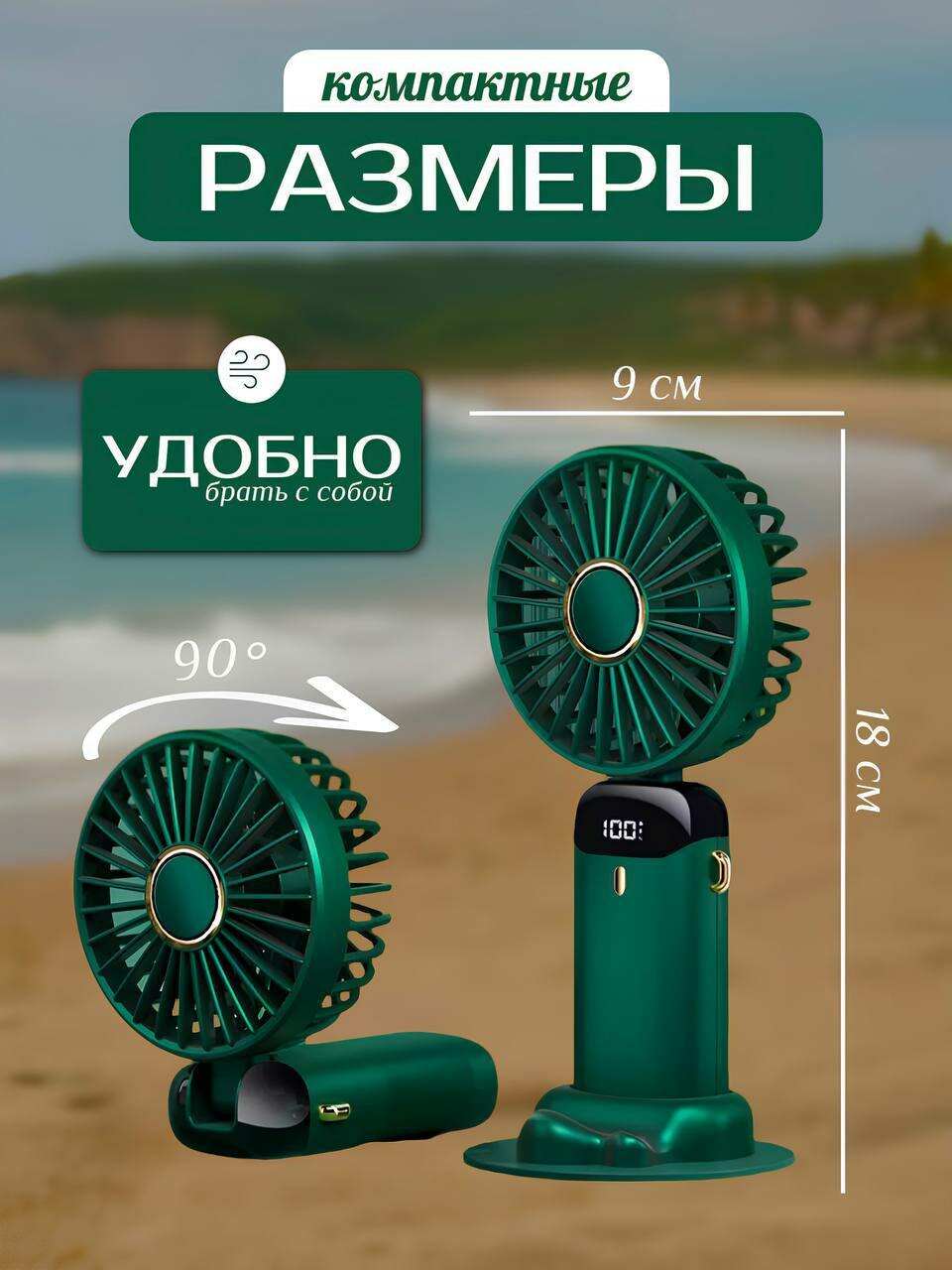 Отзывы на Портативный ручной вентилятор, 2 режима работы, встроенный аккумулятор, подставка для телефона. зеленый