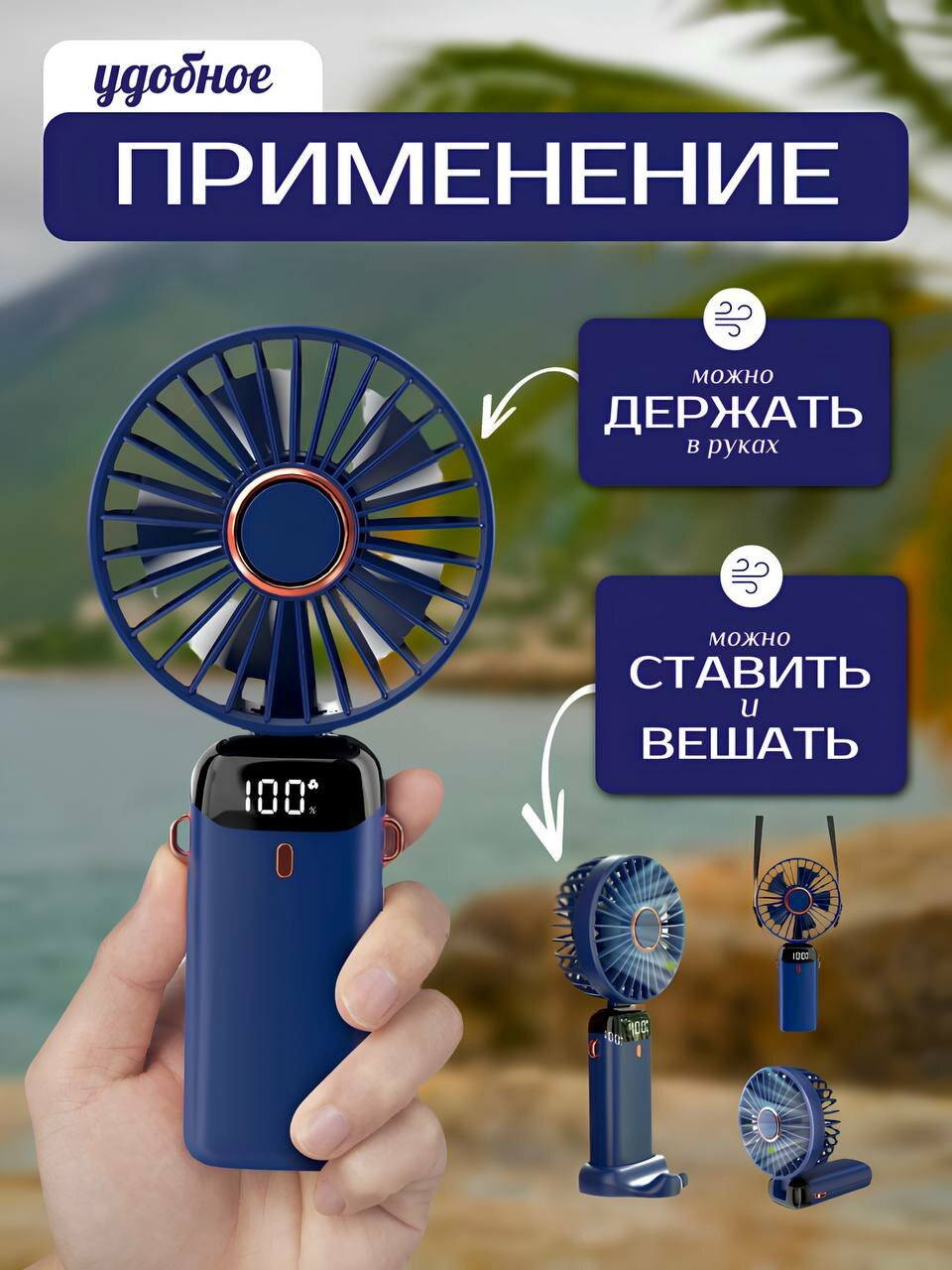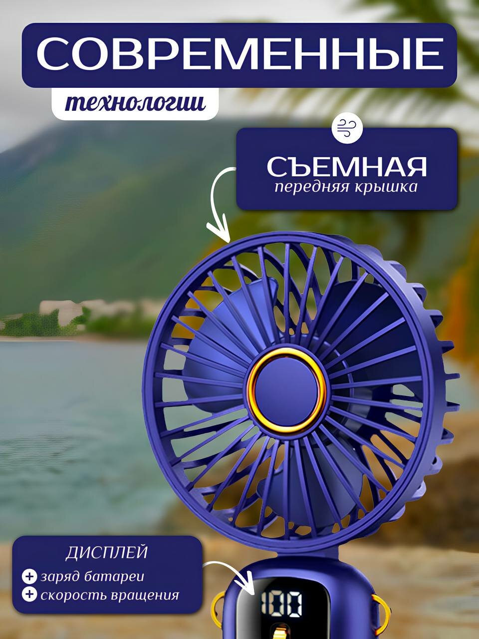 Портативный ручной вентилятор, 2 режима работы, встроенный аккумулятор, подставка для телефона, синий информация: