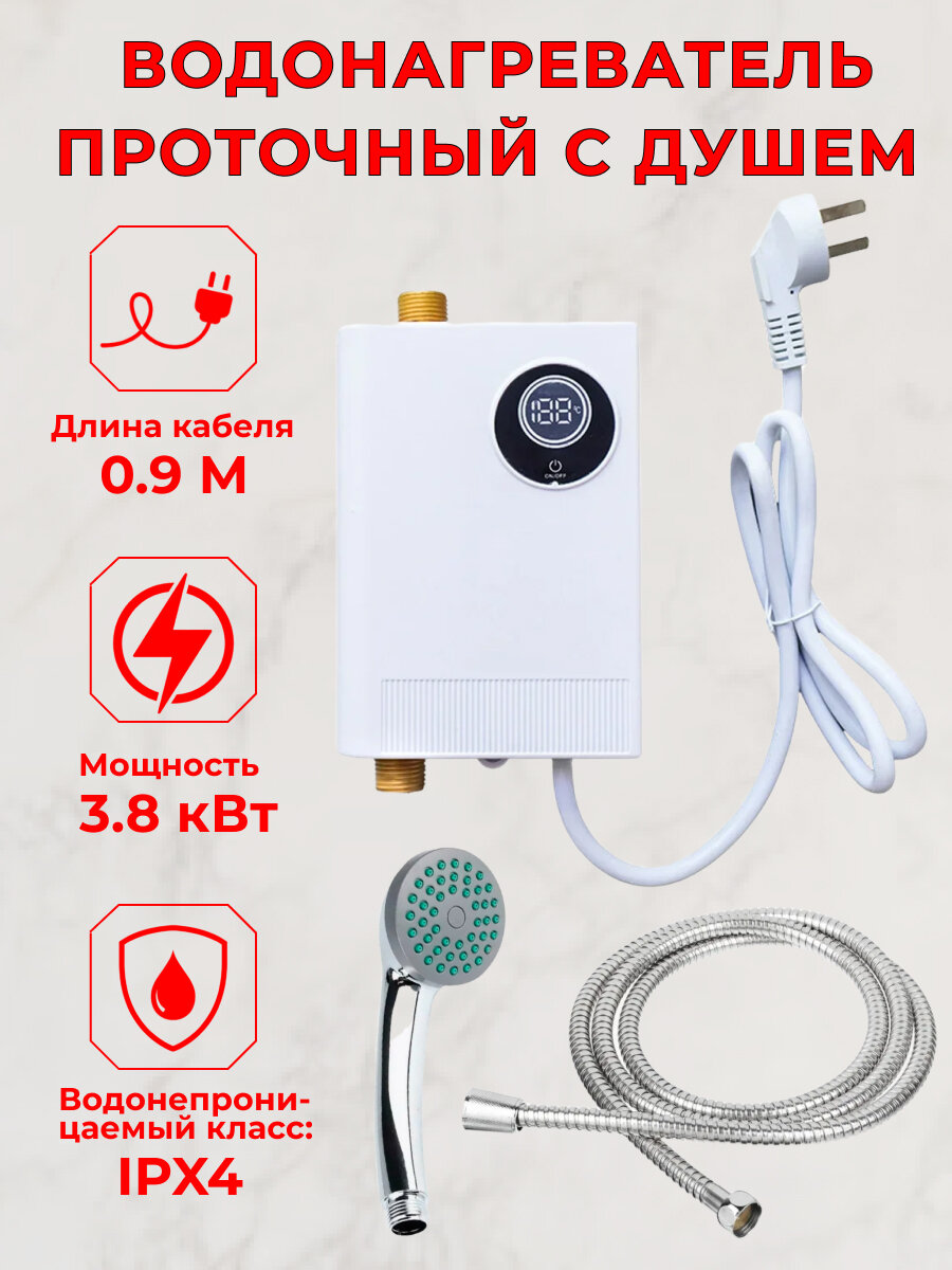 Водонагреватель проточный электрический для кухни и ванной XY-FG 3800Вт/220В с лейкой информация: