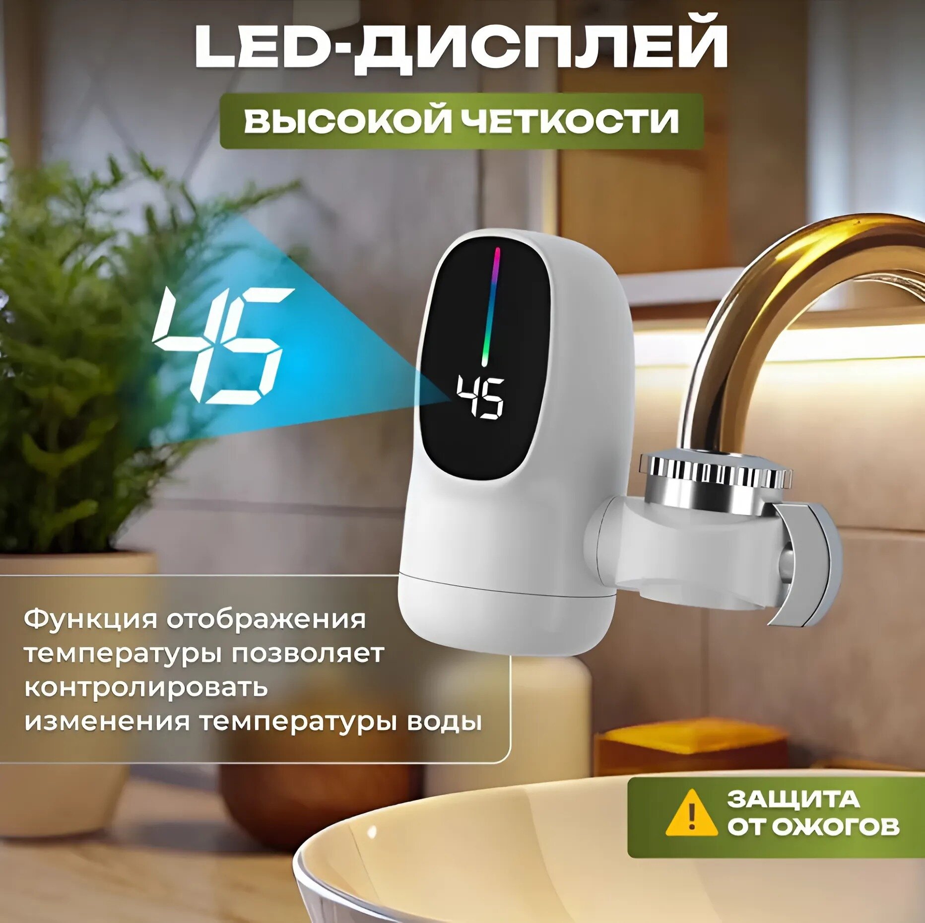 Электрический проточный водонагреватель на кран с дисплеем и регулировкой температуры воды информация: