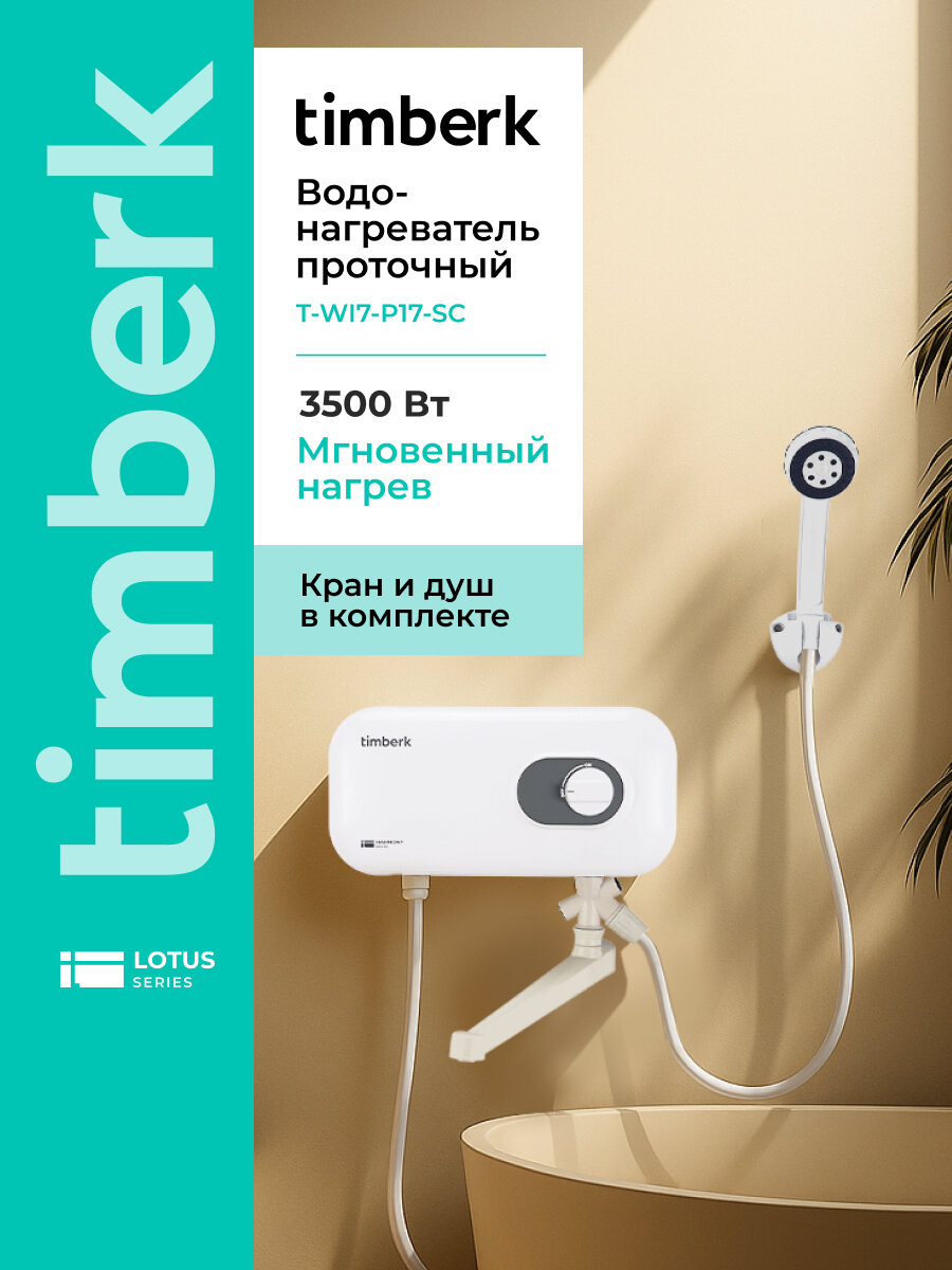 Отзывы на Водонагреватель Timberk Harmony T-WI7-P17-SC, проточный, 3.5кВт, кран и душ
