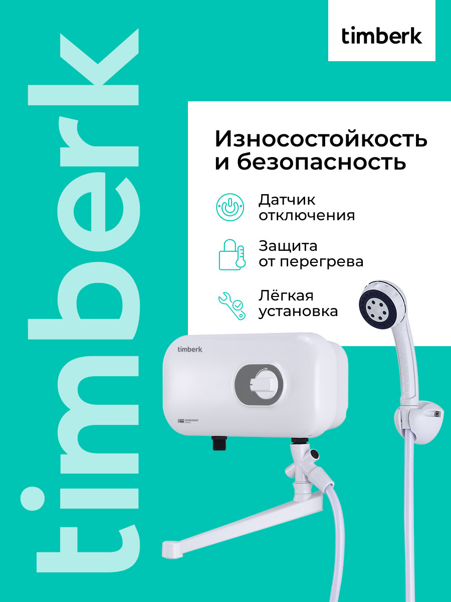 10 цен на Водонагреватель Timberk Harmony T-WI7-P17-SC, проточный, 3.5кВт, кран и душ