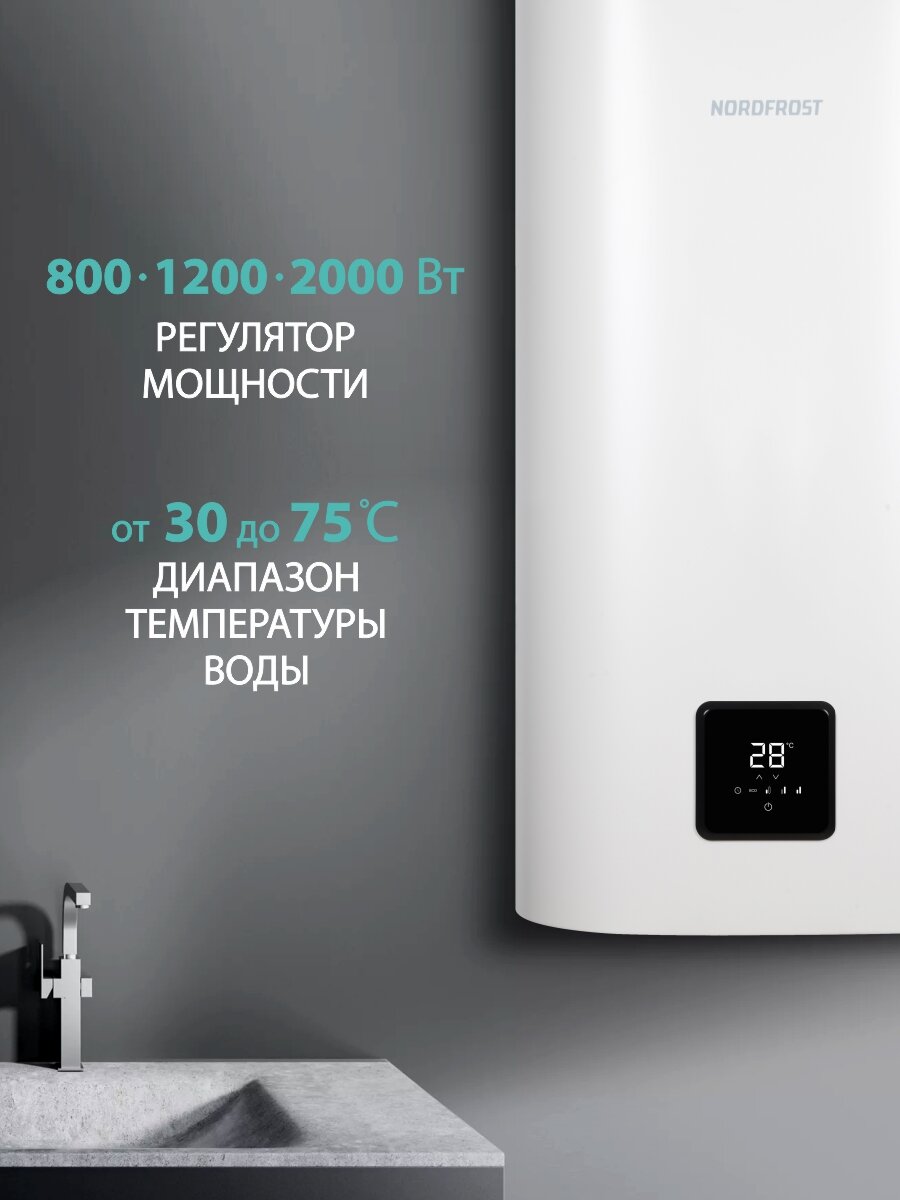 Отзывы на Электрический водонагреватель NORDFROST DDQ 80, сухой ТЭН, 80 л, 2000 Вт, электронное управление, LED-дисплей, белый